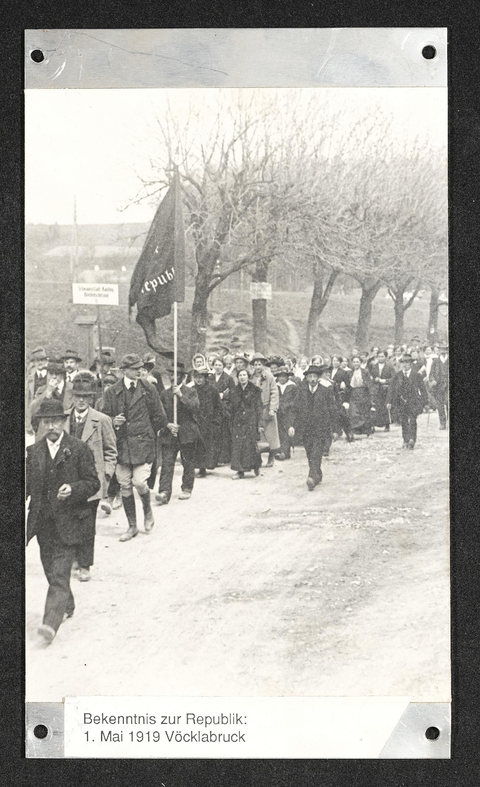 | Beschreibung | Bekenntnis zur Republik Österreich beim Maiaufmarsch am 1. Mai 1919 in Vöcklabruck |