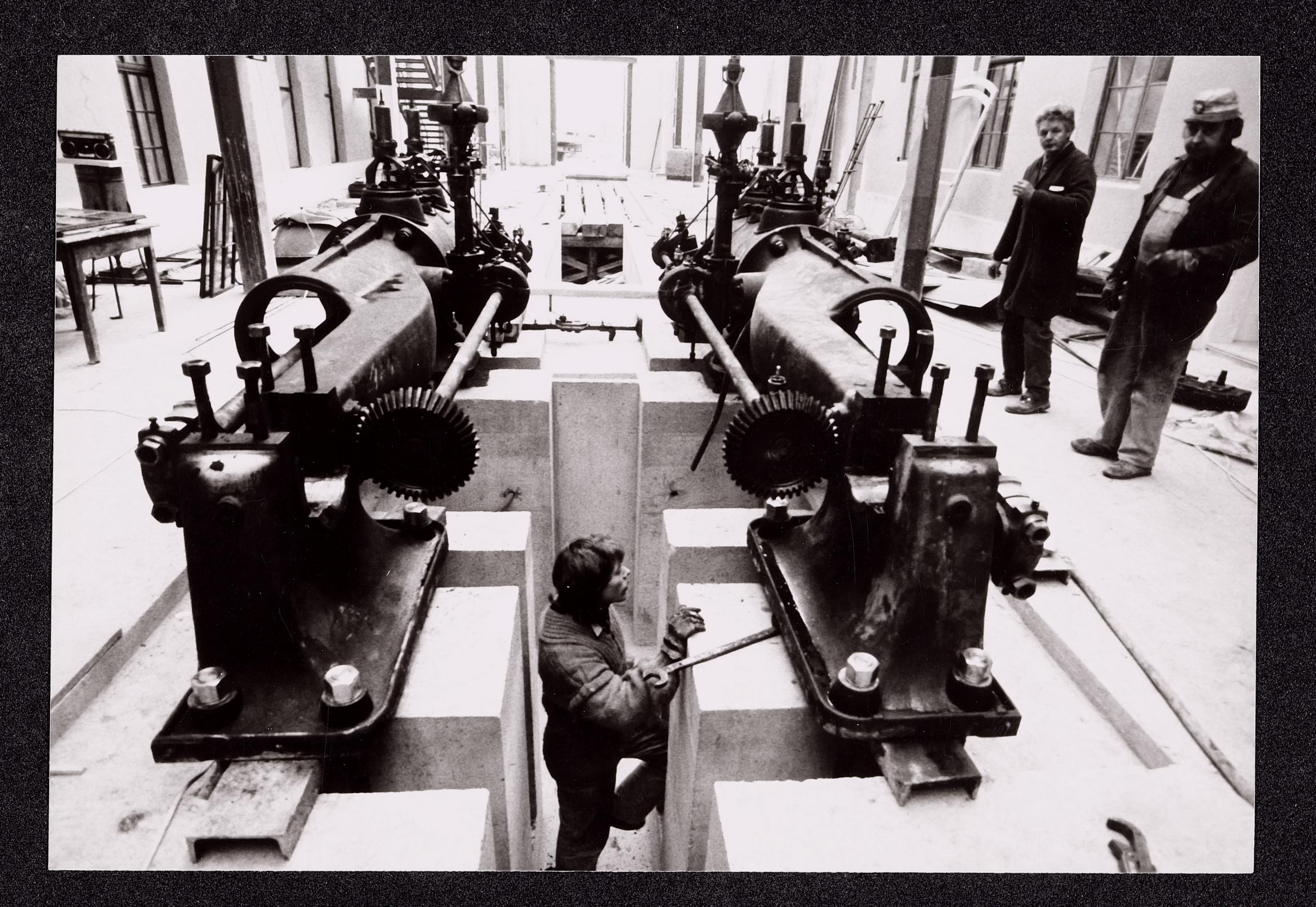 | Beschreibung | Aufbau des Objektes "Dampfmaschine" im Museum Industrielle Arbeitswelt für die Landesausstellung 1987 |