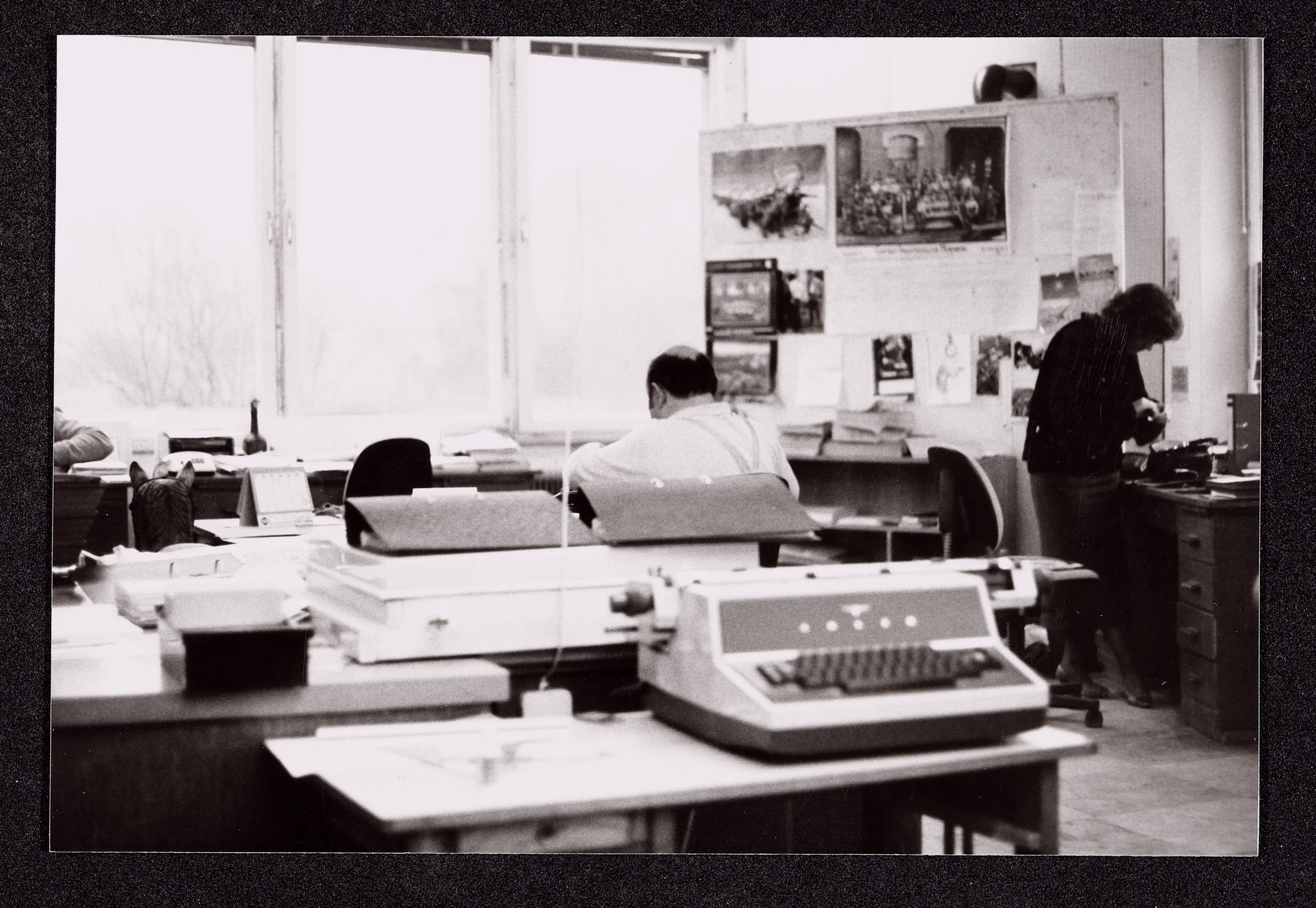 | Beschreibung | Büros im ehemaligen Direktionsgebäude der Hack-Werke und in einem Container im Jänner 1987 |