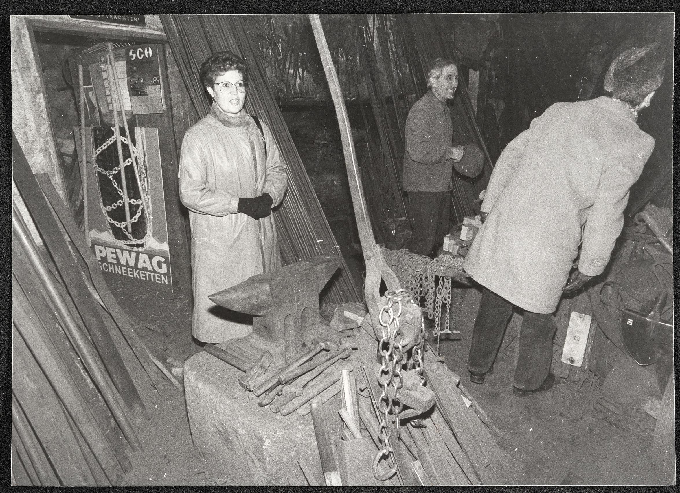 | Beschreibung | Besucherin und Besucher in der Hammerschmiede Eder vor der Demontage |