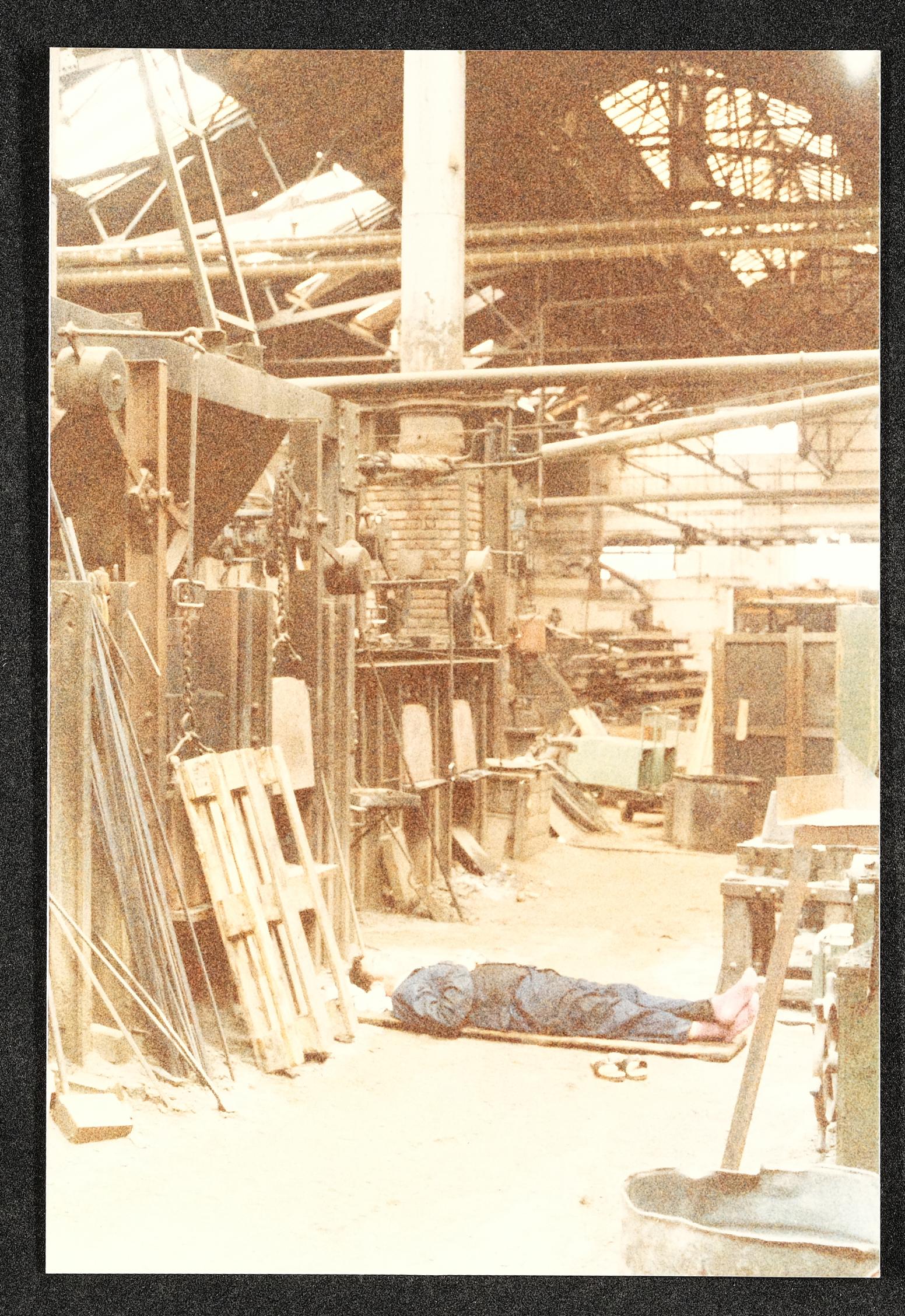 | Beschreibung | Arbeiter verbringt seine Ruhezeit am Boden liegend in der ÖBB-Hauptwerkstätte |