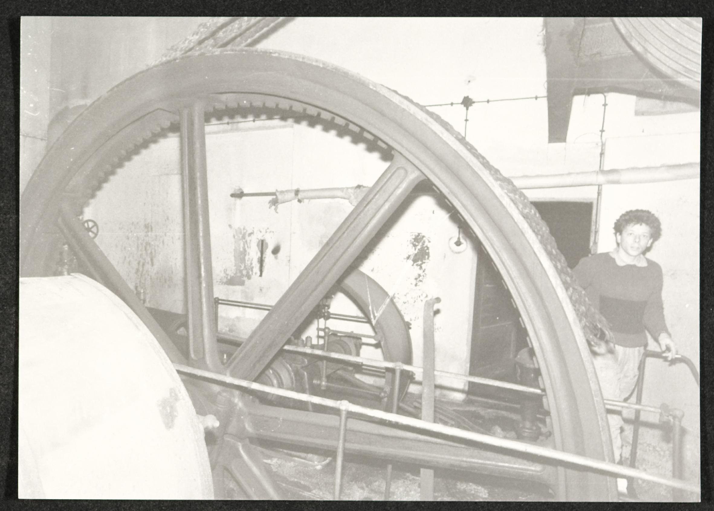| Beschreibung | Besichtigung einer Dampfmaschine vor der Demontage auf dem Gelände der ehemaligen Lederfabrik |