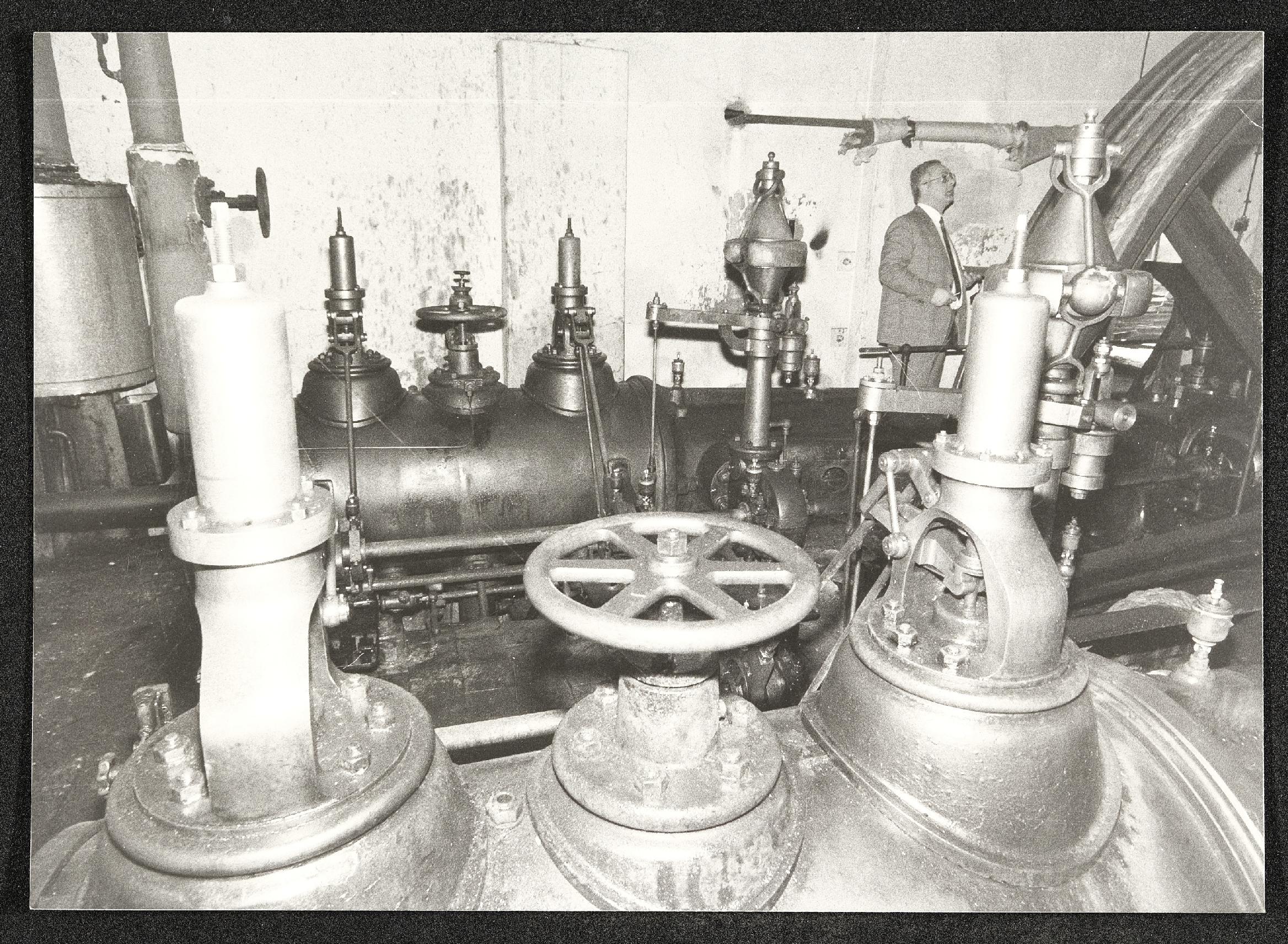 | Beschreibung | Besichtigung einer Dampfmaschine vor der Demontage auf dem Gelände der ehemaligen Lederfabrik |