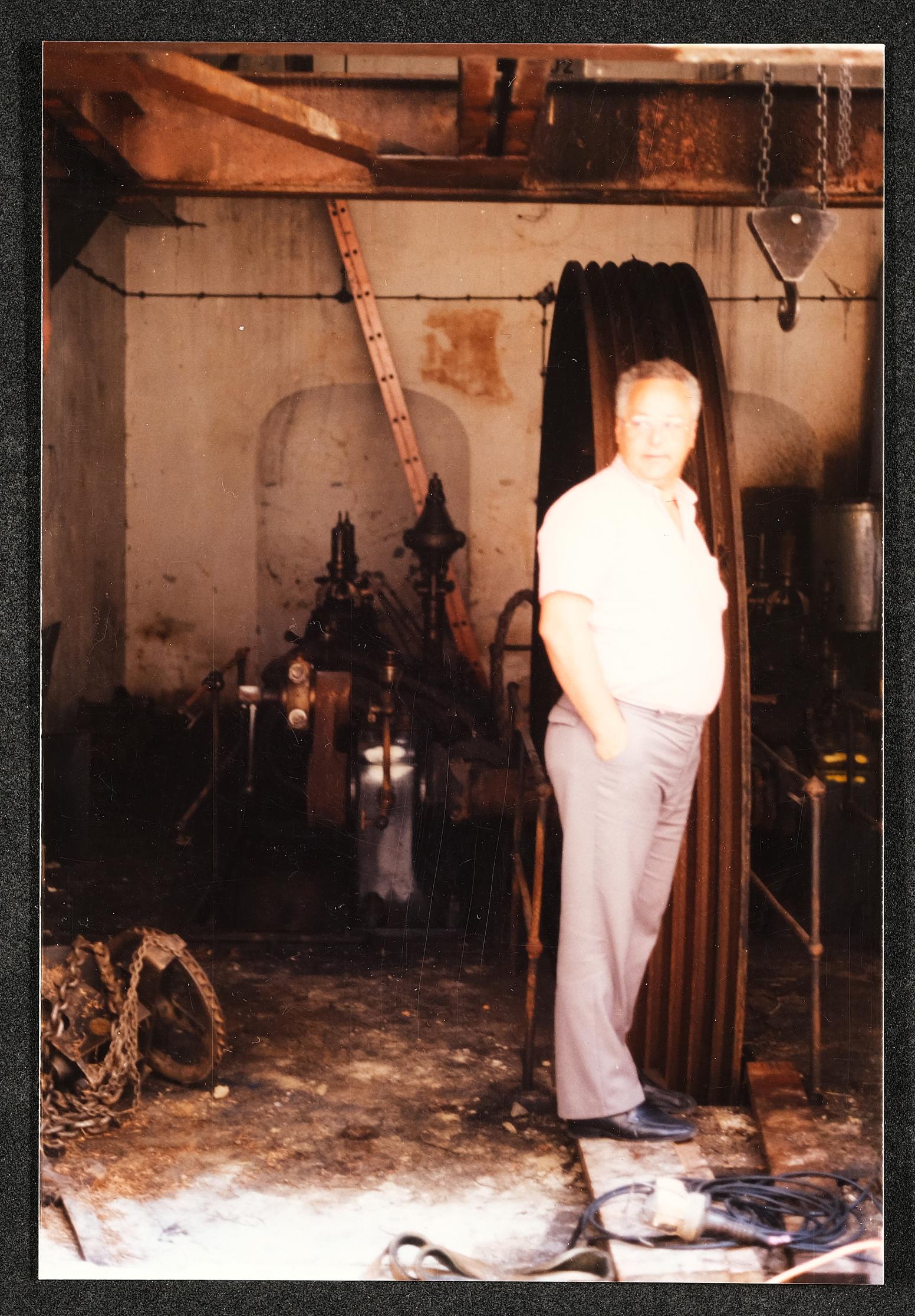 | Beschreibung | Besichtigung einer Dampfmaschine vor der Demontage auf dem Gelände der ehemaligen Lederfabrik |