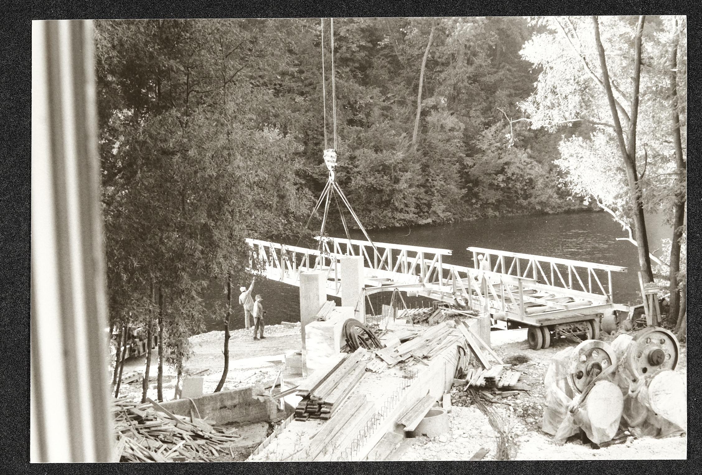 | Beschreibung | Montage des Museumsstegs unterhalb des Schlosses über den Fluss Steyr zum Museum Arbeitswelt in Steyr |