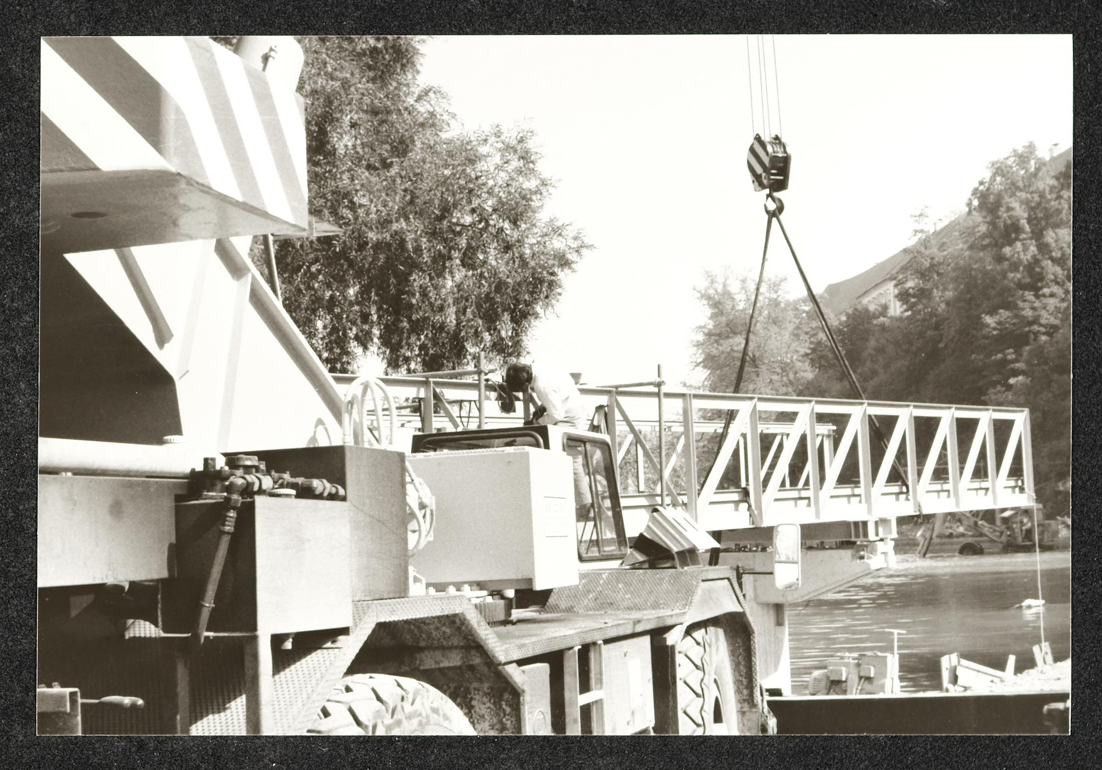 | Beschreibung | Montage des Museumsstegs unterhalb des Schlosses über den Fluss Steyr zum Museum Arbeitswelt in Steyr |