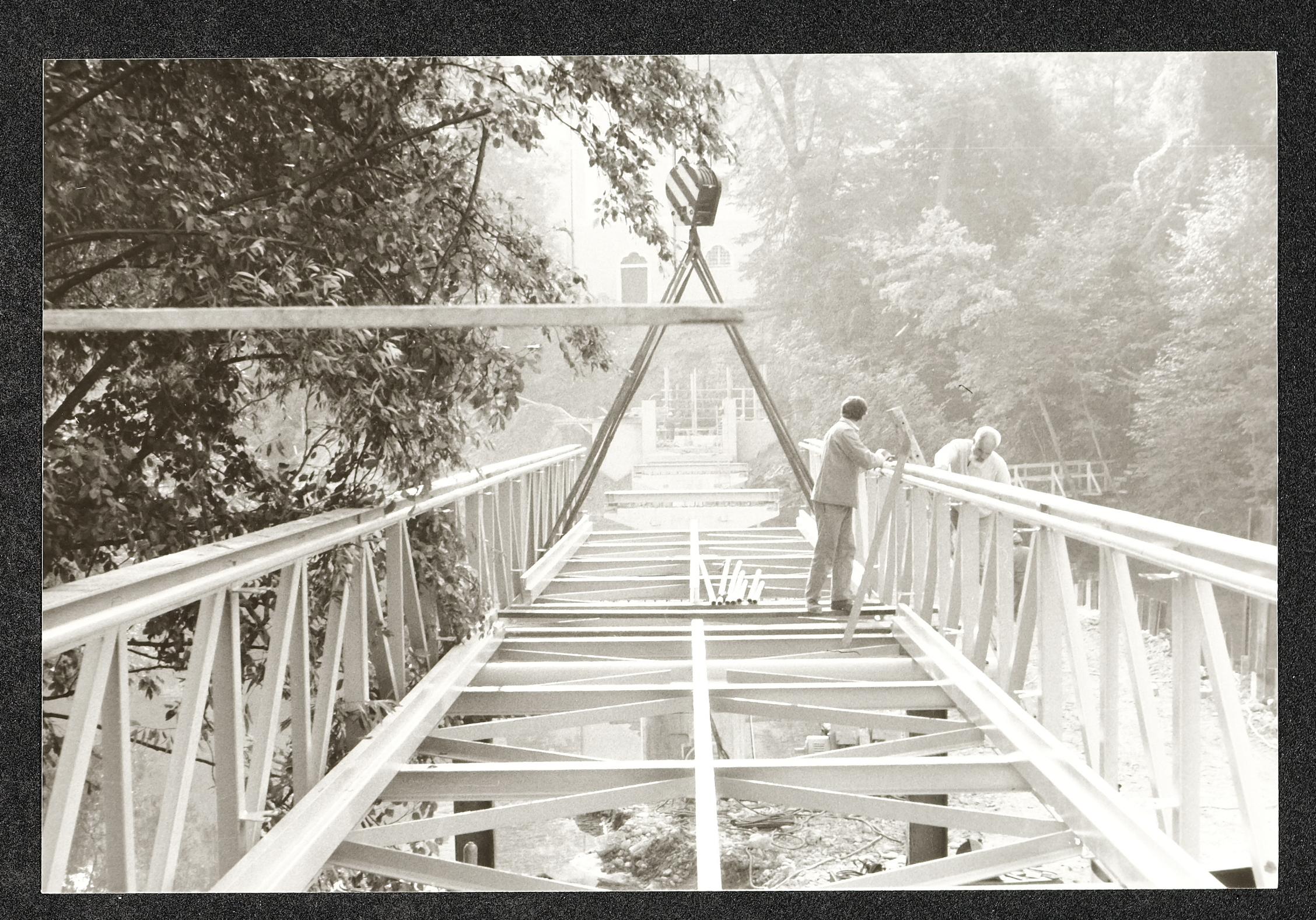 | Beschreibung | Montage des Museumsstegs unterhalb des Schlosses über den Fluss Steyr zum Museum Arbeitswelt in Steyr |