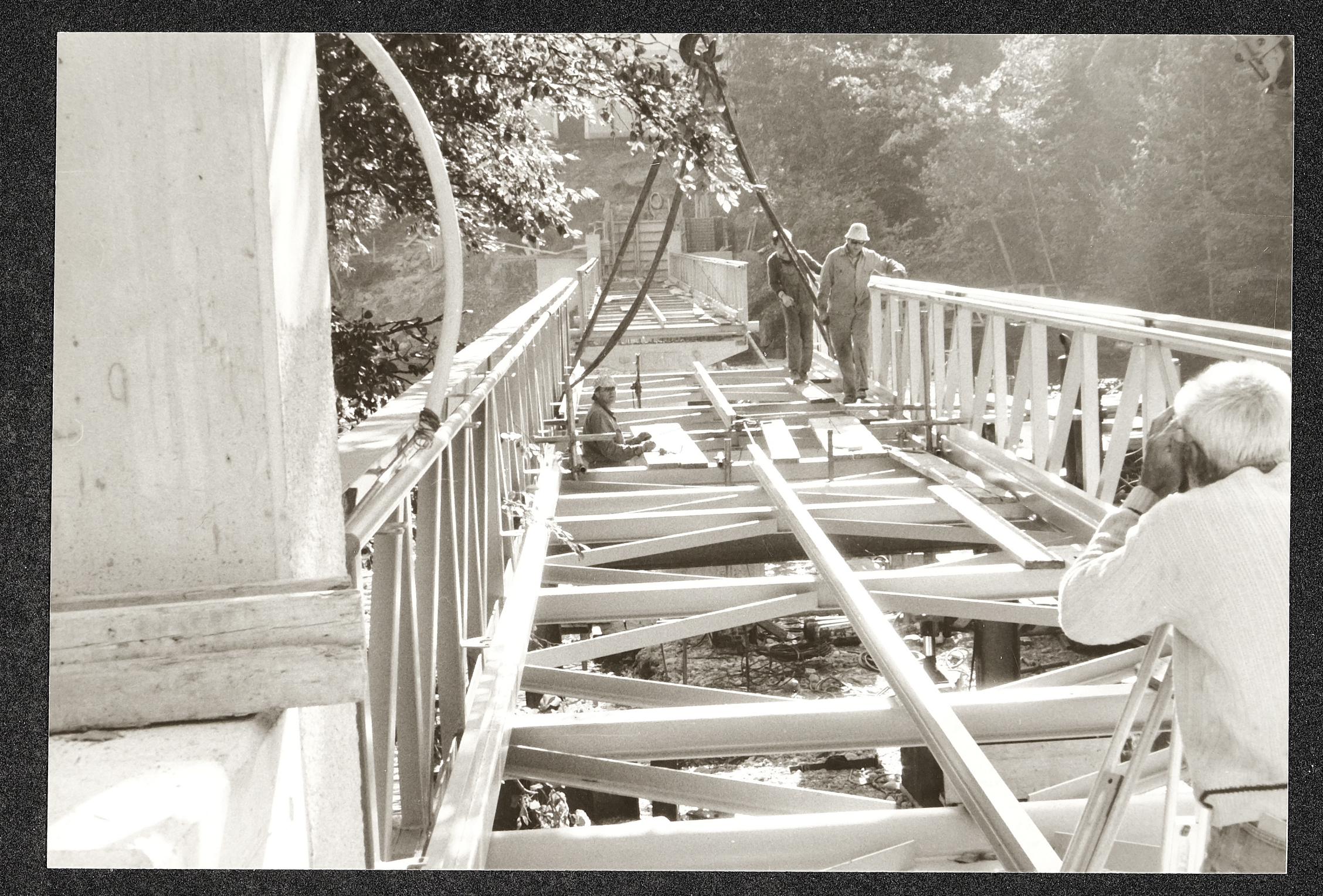 | Beschreibung | Montage des Museumsstegs unterhalb des Schlosses über den Fluss Steyr zum Museum Arbeitswelt in Steyr |