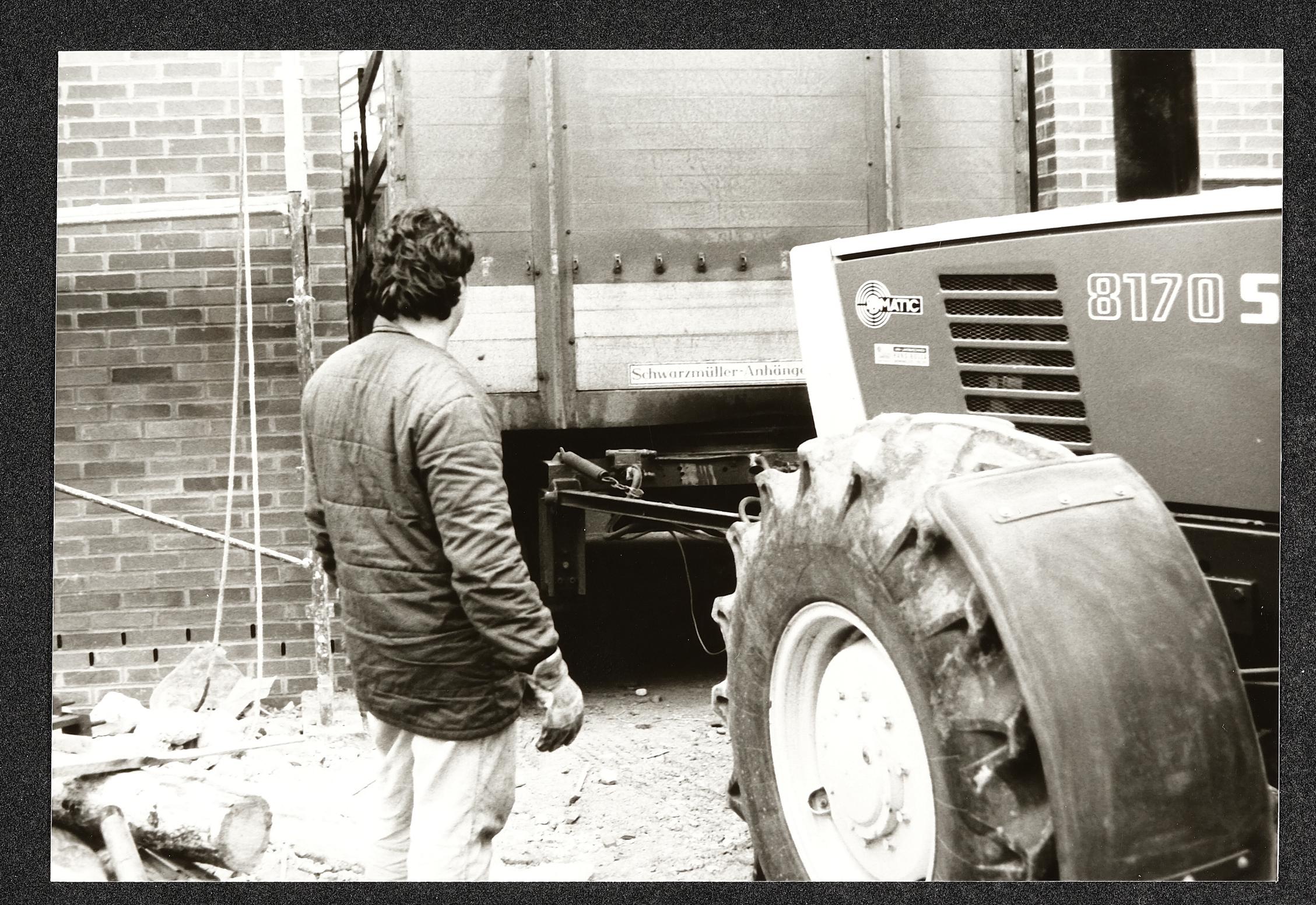 | Beschreibung | Ein Steyr-Traktor hilft bei der Anlieferung der Dampfmaschine für die Montage im Foyer des Museum Arbeitswelt Steyr |