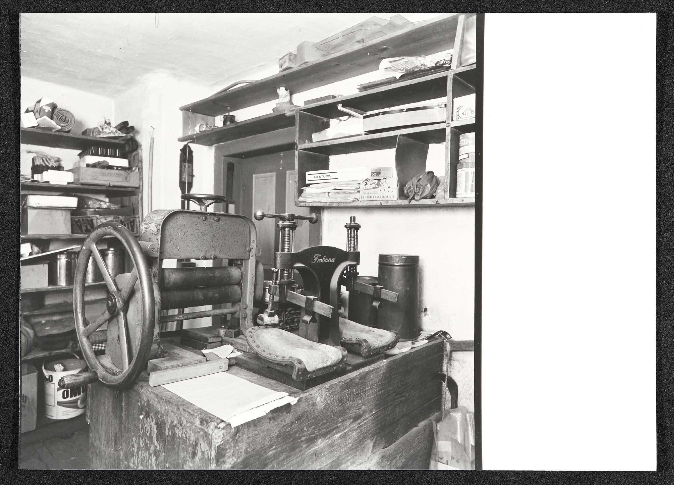 | Beschreibung | Einrichtung und Arbeitsgegenstände in einer Schusterwerkstätte |