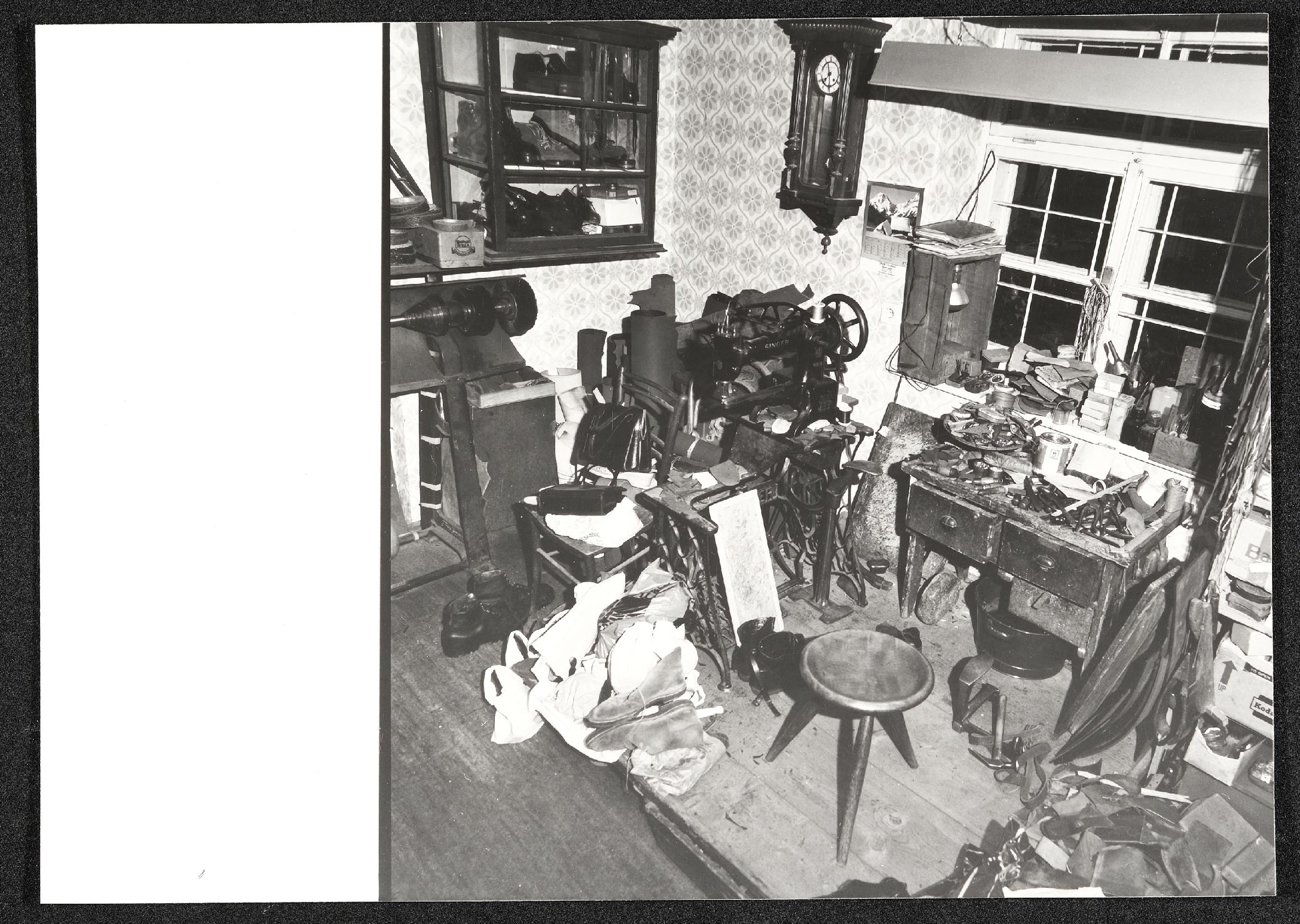 | Beschreibung | Einrichtung und Arbeitsgegenstände in einer Schusterwerkstätte |