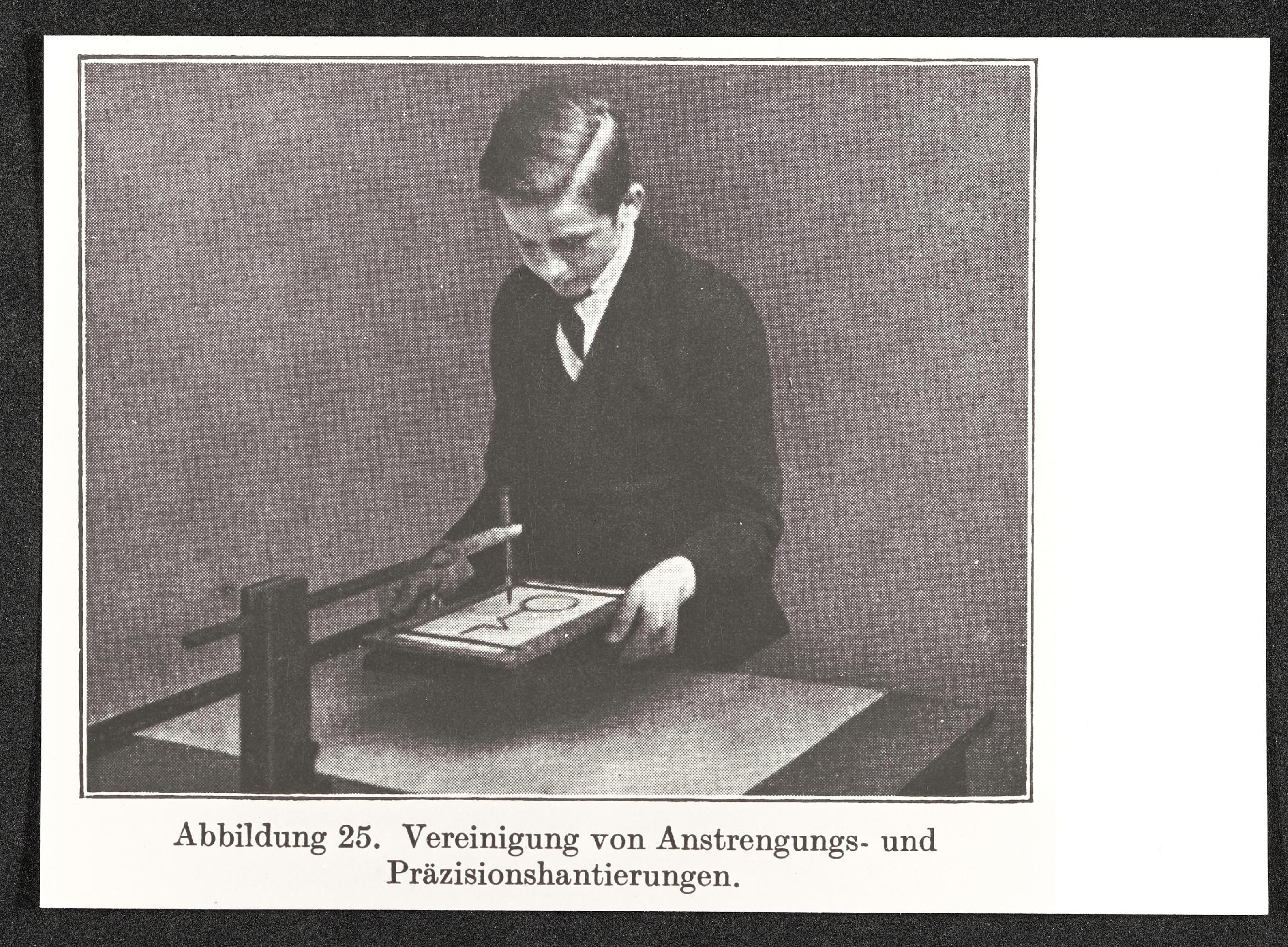 | Beschreibung | Abbildung 25. Vereinigung von Anstrengungs- und Präzisionshantierungen. Foto aus GEWERBEFÖRDERUNGSINSTITUT- Jubiläumsbericht 1910-1935 - 25 Jahre Gewerbeförderung in Wien |
