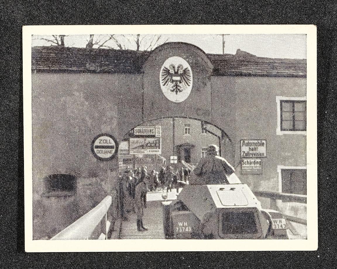 | Beschreibung | Sammelbild Nr. 176 Einfahrt in Schärding bei der Befreiung Österreichs. Sammelbilder (in Zigarettenpackungen enthalten) und Sammelband (Adolf Hitler und sein Weg zu Großdeutschland) erhältlich in jeder Tabaktrafik. |