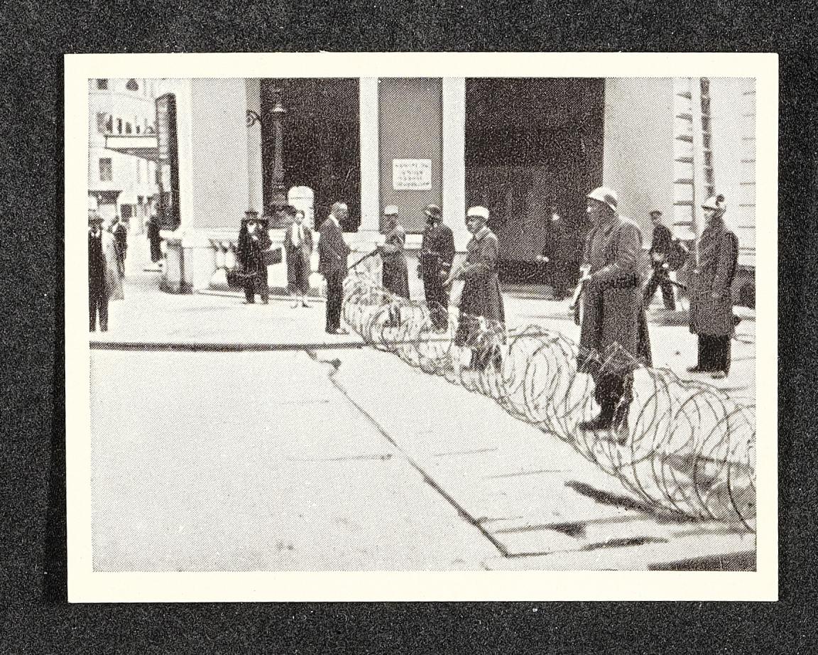 | Beschreibung | Sammelbild Nr. 134 Drahthindernisse in den Straßen Wiens im Sommer 1934. Sammelbilder (in Zigarettenpackungen enthalten) und Sammelband (Adolf Hitler und sein Weg zu Großdeutschland) erhältlich in jeder Tabaktrafik. |