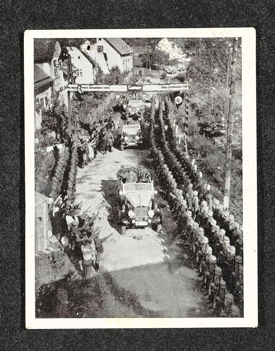 | Beschreibung | Sammelbild Nr. 289 Der Führer auf sudetendeutschem Boden. Sammelbilder (in Zigarettenpackungen enthalten) und Sammelband (Adolf Hitler und sein Weg zu Großdeutschland) erhältlich in jeder Tabaktrafik. |