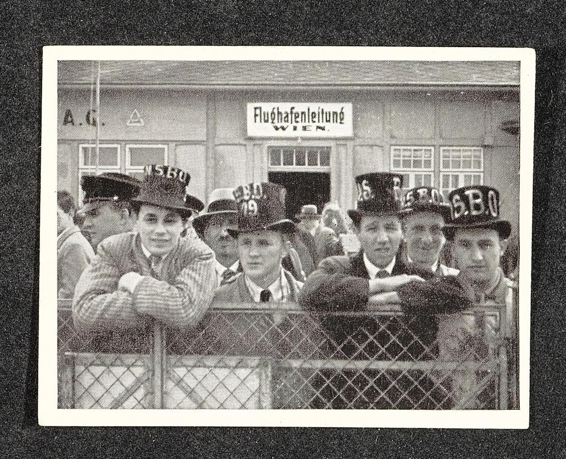 | Beschreibung | Sammelbild Nr. 106 Während des Uniformverbots erwartet NSBO., lustig maskiert, auf dem Asperner Flughafen die reichsdeutschen Minister. Sammelbilder (in Zigarettenpackungen enthalten) und Sammelband (Adolf Hitler und sein Weg zu Großdeutschland) erhältlich in jeder Tabaktrafik. |