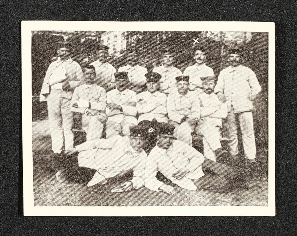 | Beschreibung | Sammelbild Nr. 47 1917 im Lazarett von Beelitz. Sammelbilder (in Zigarettenpackungen enthalten) und Sammelband (Adolf Hitler und sein Weg zu Großdeutschland) erhältlich in jeder Tabaktrafik. |