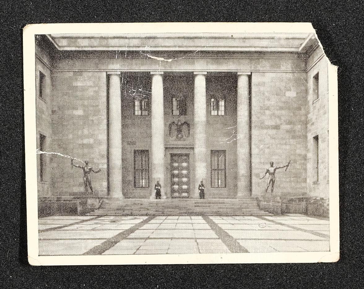 | Beschreibung | Sammelbild Nr. 273 Der Ehrenhof der neuen Reichskanzlei. Sammelbilder (in Zigarettenpackungen enthalten) und Sammelband (Adolf Hitler und sein Weg zu Großdeutschland) erhältlich in jeder Tabaktrafik. |
