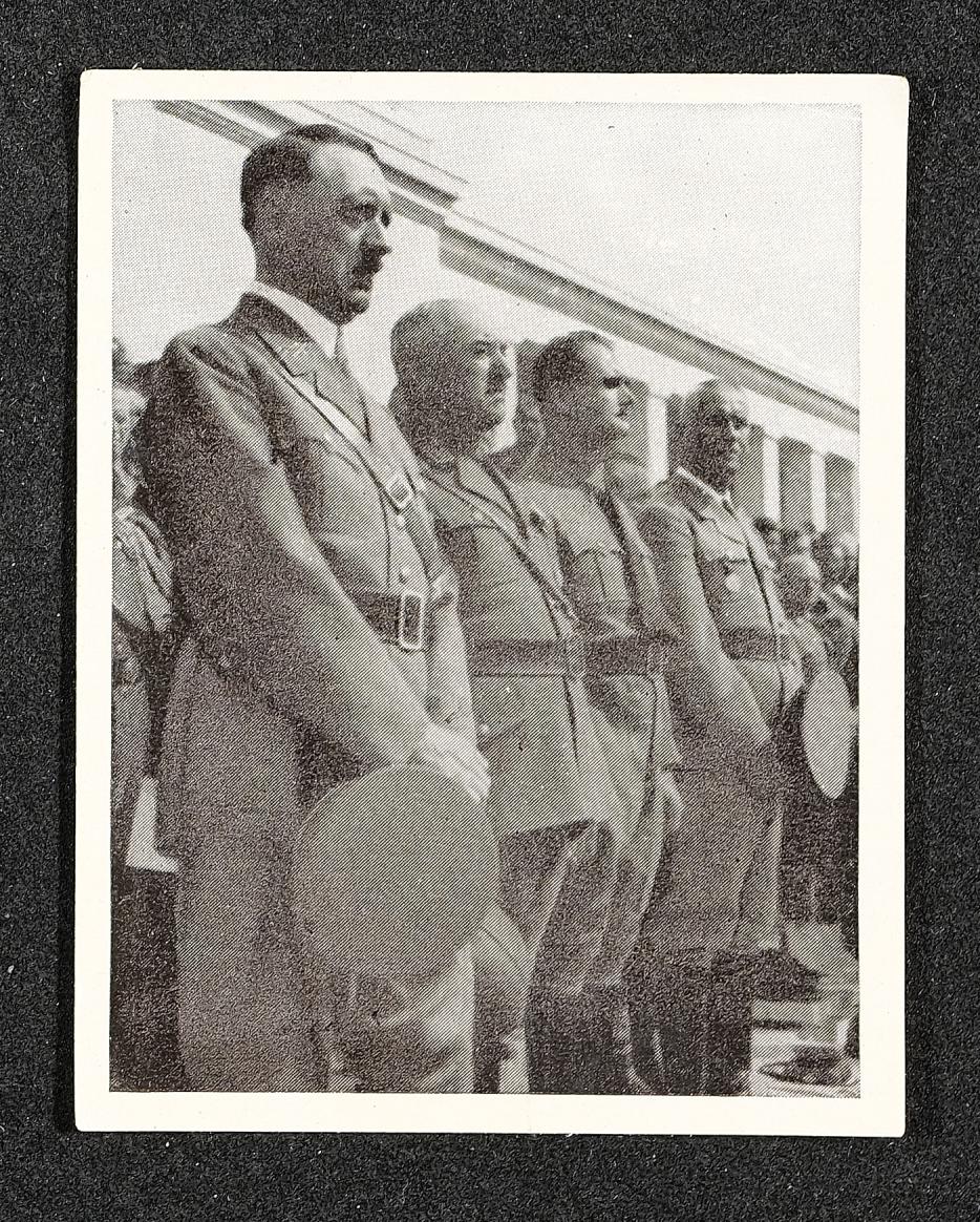 | Beschreibung | Sammelbild Nr. 279 Totenehrung, Reichsparteitag 1938. Sammelbilder (in Zigarettenpackungen enthalten) und Sammelband (Adolf Hitler und sein Weg zu Großdeutschland) erhältlich in jeder Tabaktrafik. |