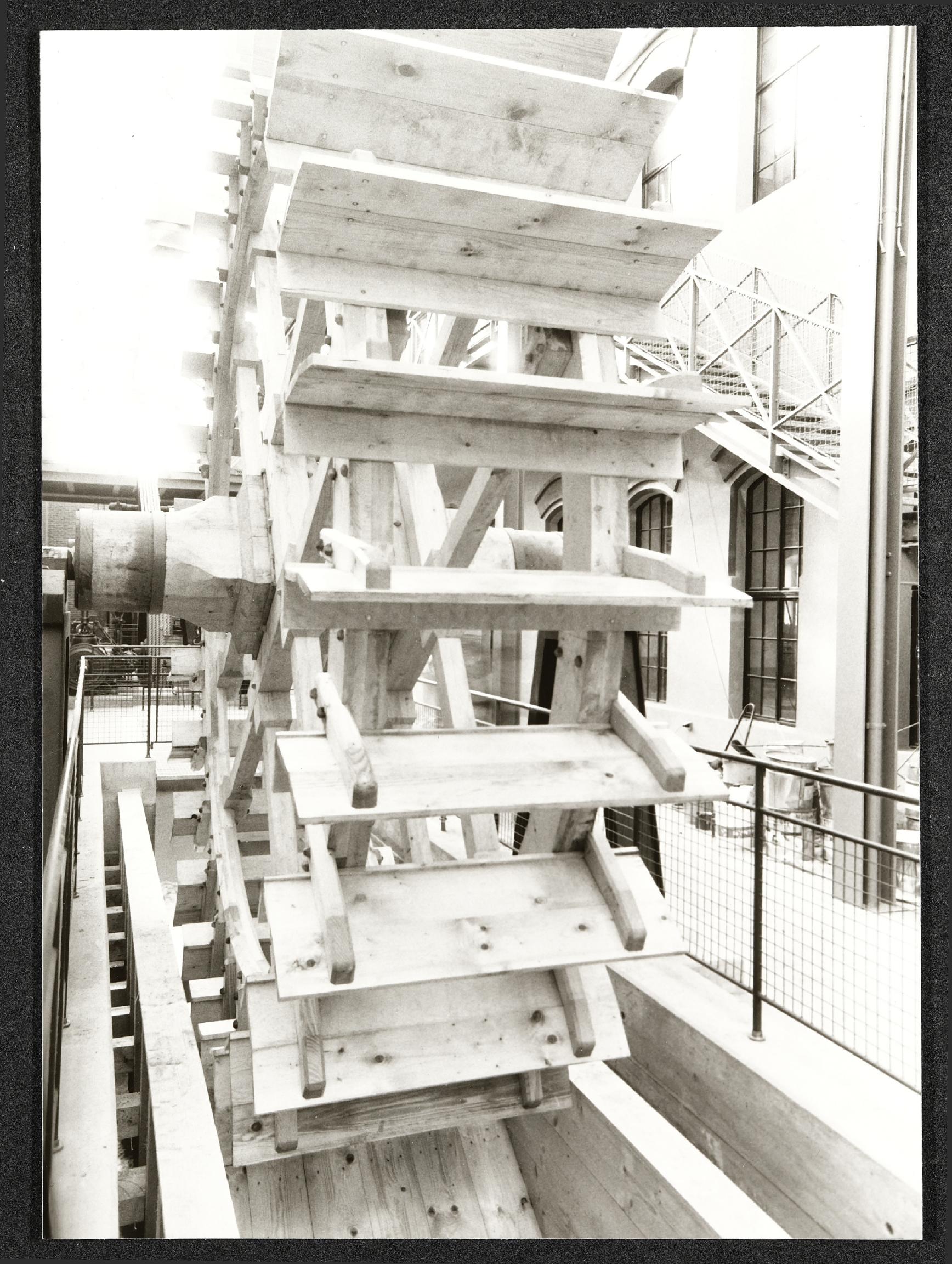 | Beschreibung | Innenansicht während des Aufbaus des Objektes "Wasserrad" für die Landesausstellung 1987 "Arbeit Mensch Maschine" im Museum Industrielle Arbeitswelt Steyr |