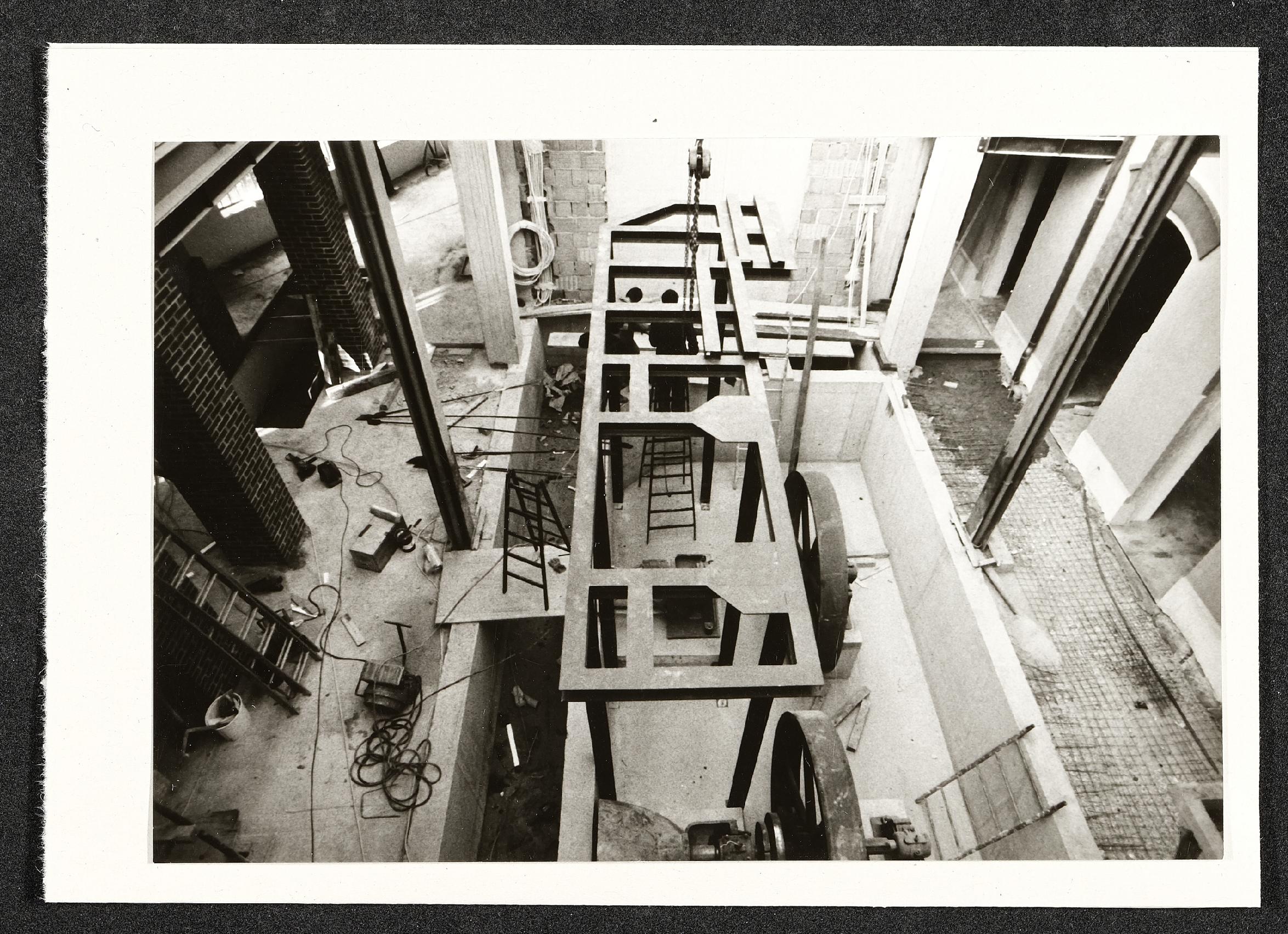 | Beschreibung | Bauarbeiten für die Landesausstellung 1987 "Arbeit - Mensch - Maschine" im Museum Industrielle Arbeitswelt Steyr: Mittelhalle, Aufbau E-Werk |