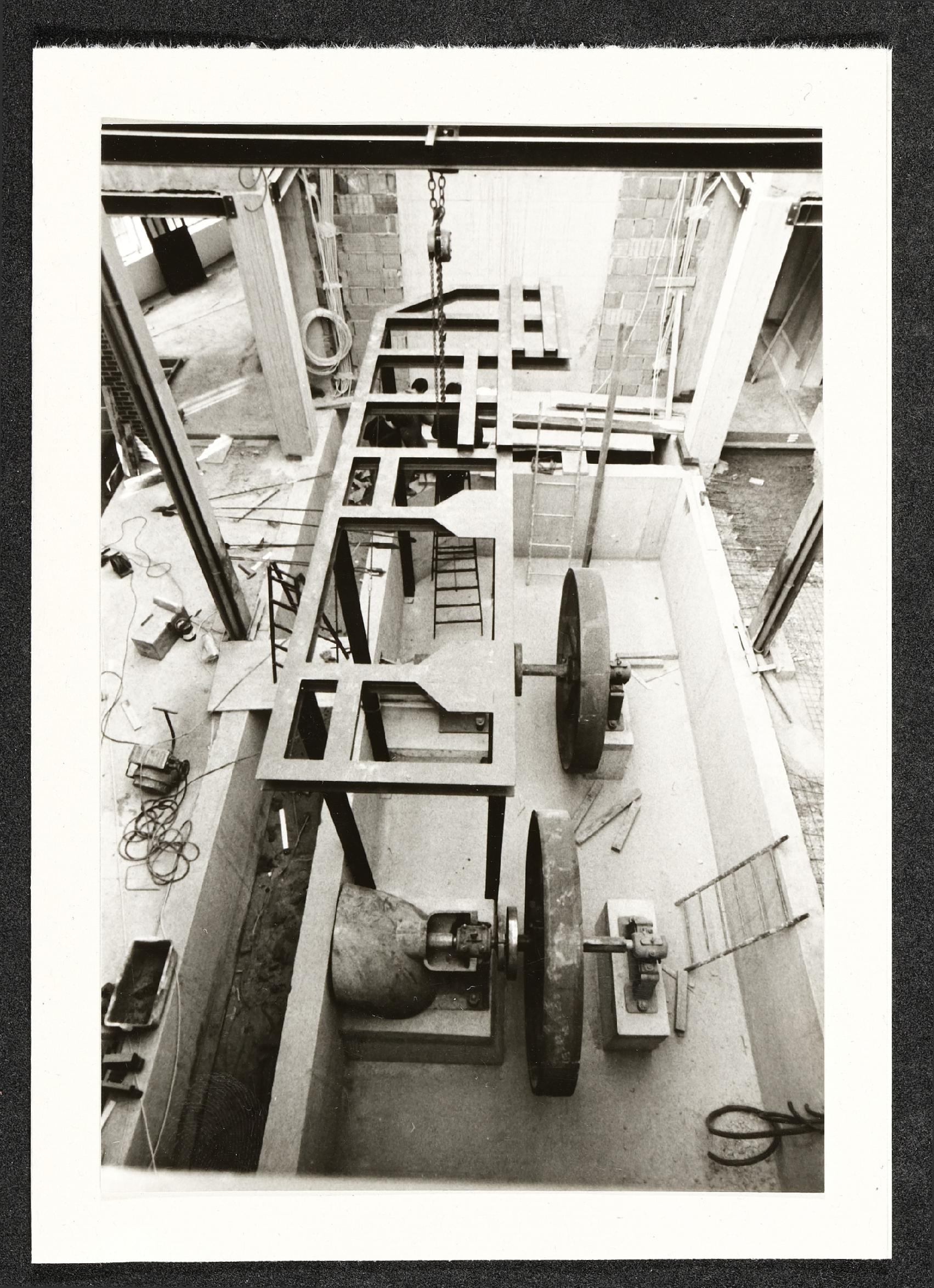 | Beschreibung | Bauarbeiten für die Landesausstellung 1987 "Arbeit - Mensch - Maschine" im Museum Industrielle Arbeitswelt Steyr: Mittelhalle, Aufbau E-Werk |