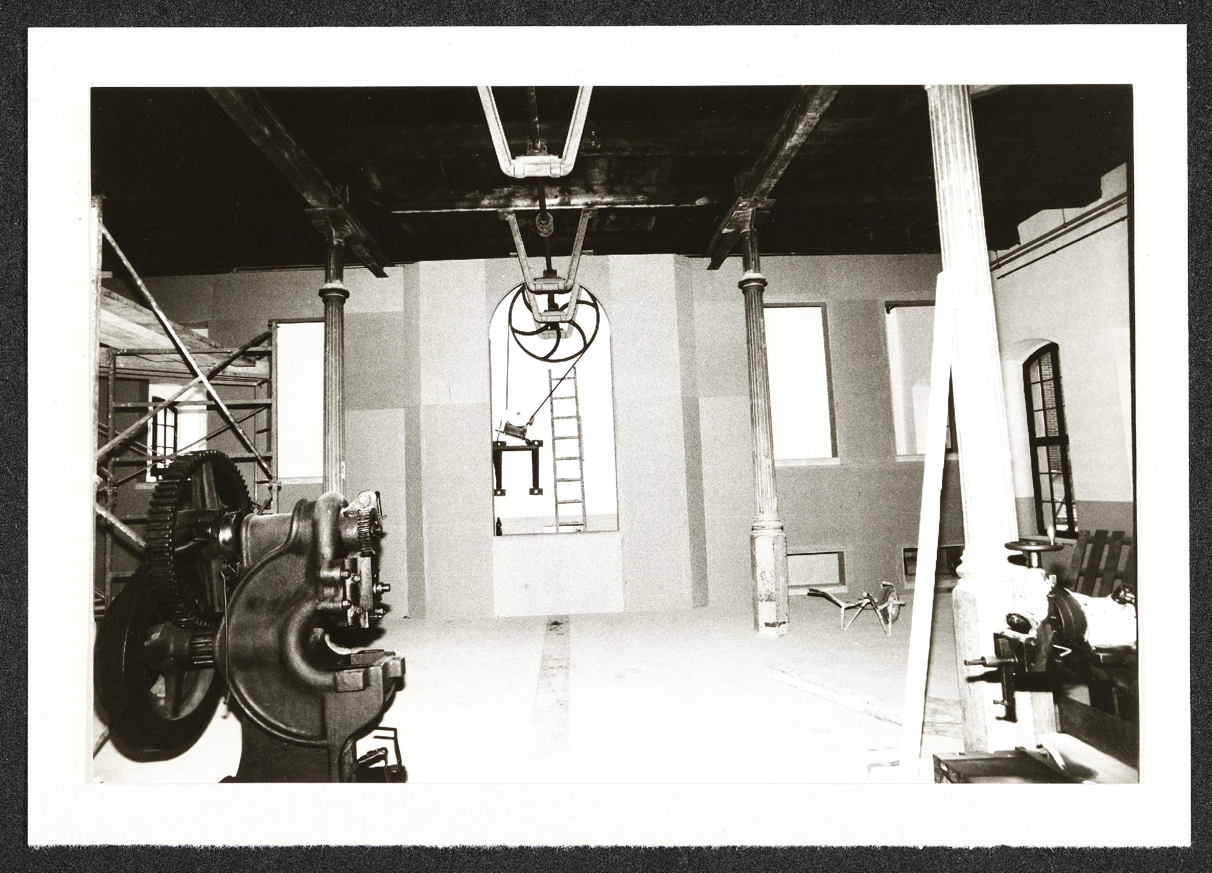 | Beschreibung | Aufbauarbeiten für die Landesausstellung 1987 "Arbeit - Mensch - Maschine" im Museum Industrielle Arbeitswelt Steyr: Transmissionshalle, Maschinen |