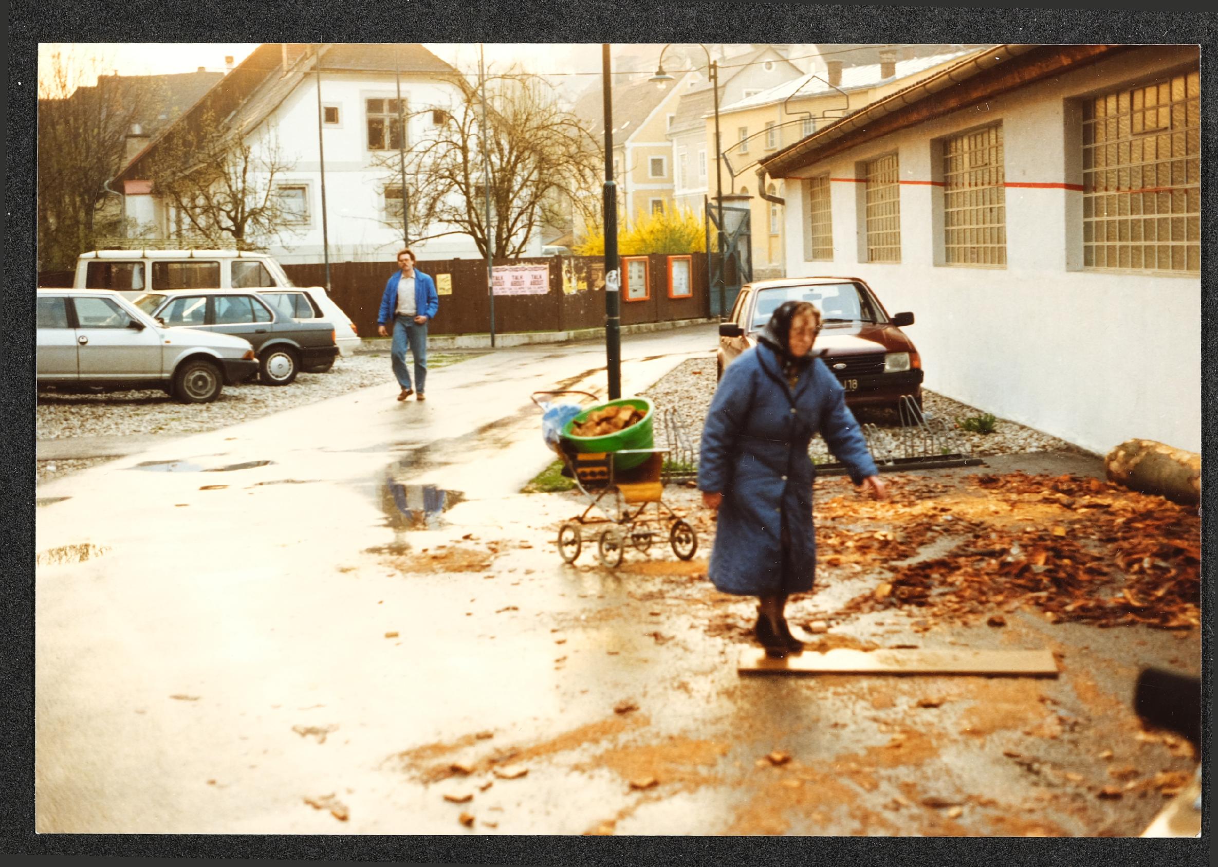 | Beschreibung | Montage des stählernen Menschens im Fluss Steyr im April 1991 |