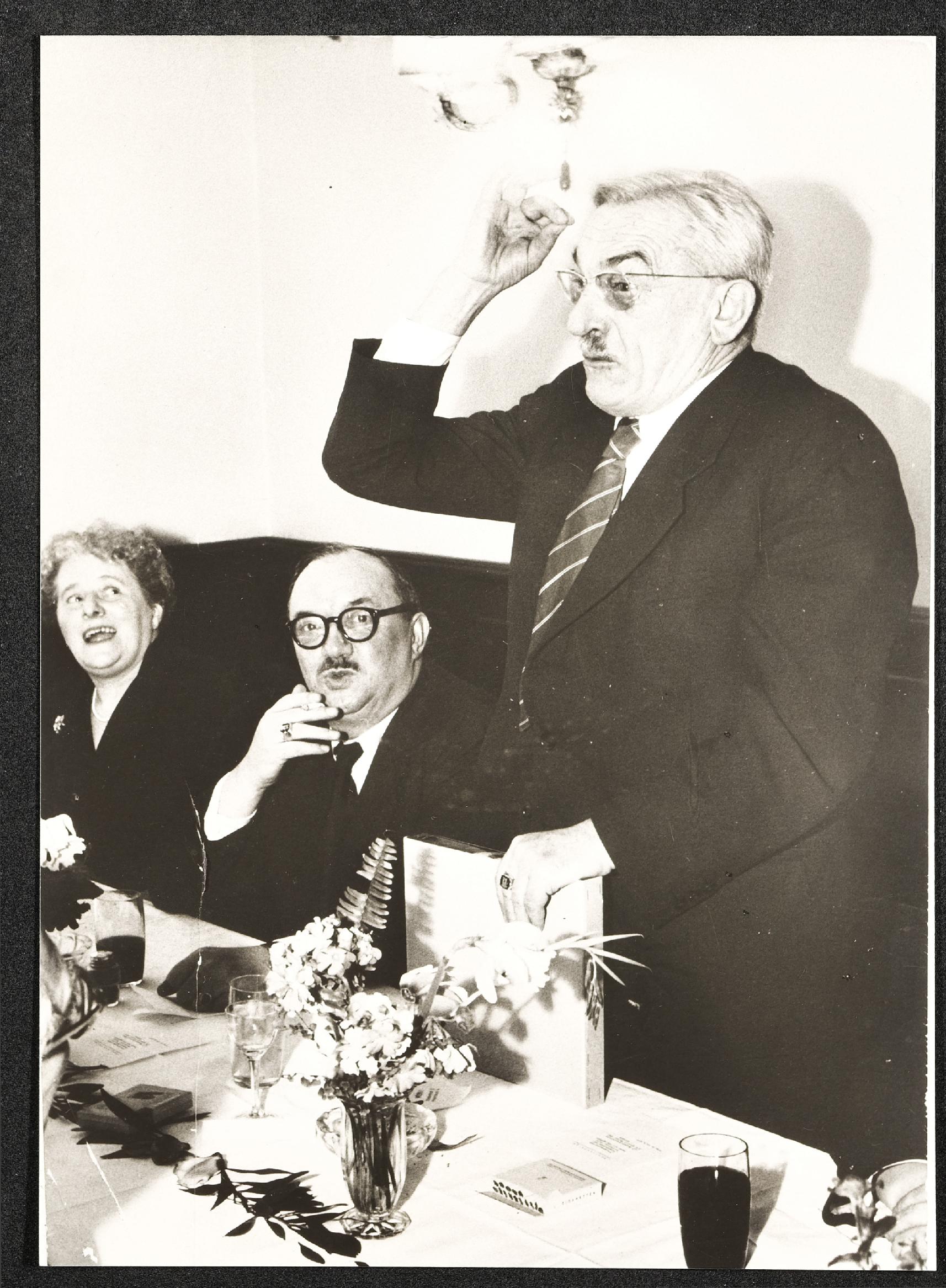 | Beschreibung | Karl Lugmayer (stehend) und Lois Weinberger (sitzend, Gründer und erster Bundesobmann des ÖAAB). Nähere Daten zu dieser Aufnahme sind nicht bekannt. |