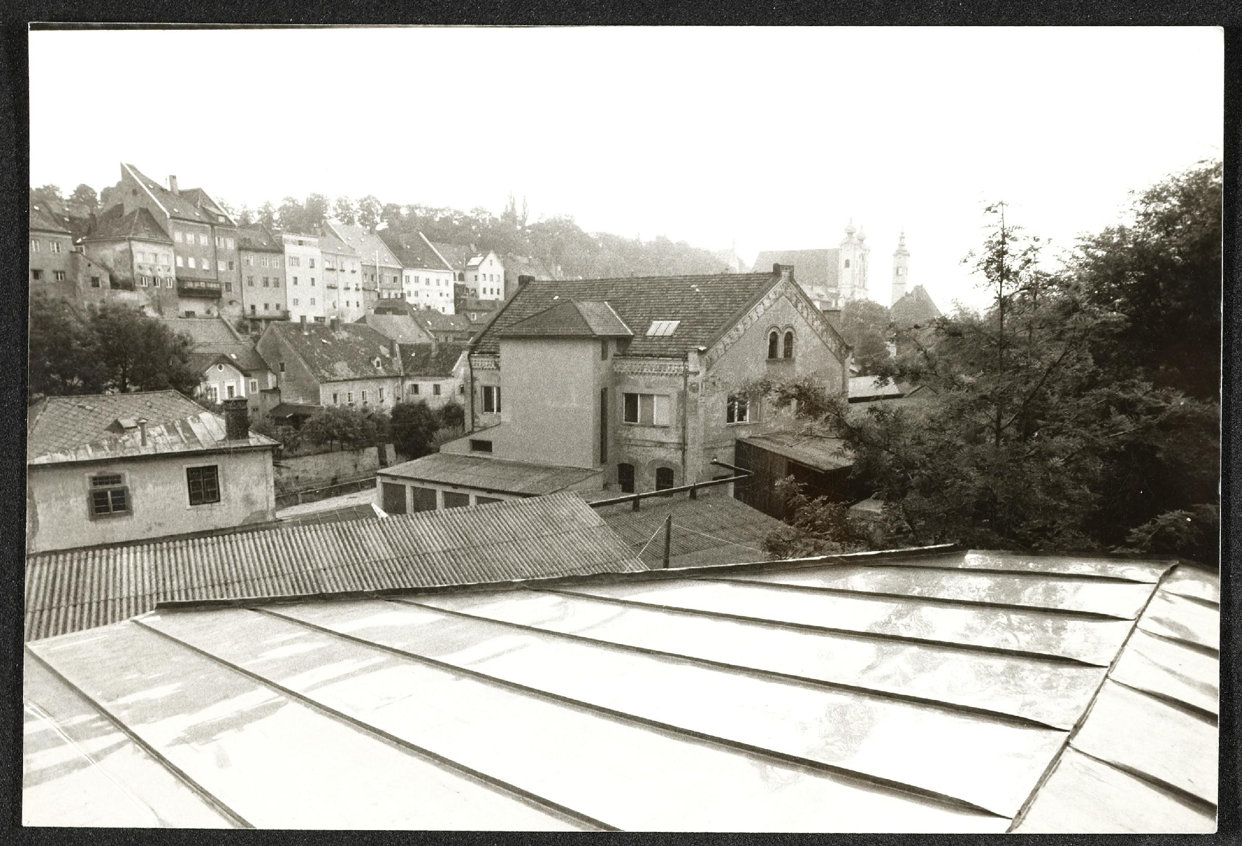 | Beschreibung | Während der Bauarbeiten: Dach im Bürotrakt, Blick auf das Direktionsgebäude der Hack-Werke (später FAZAT) vor dem Umbau |