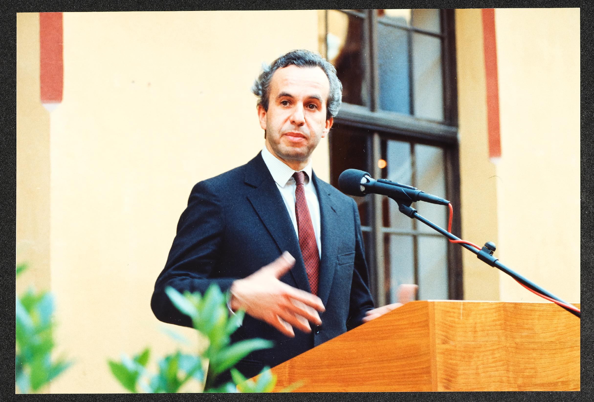 | Beschreibung | Landesausstellung 1987 "Arbeit - Mensch - Maschine" im Museum Industrielle Arbeitswelt Steyr: Eröffnung Info, Rede von Minister Scholten |