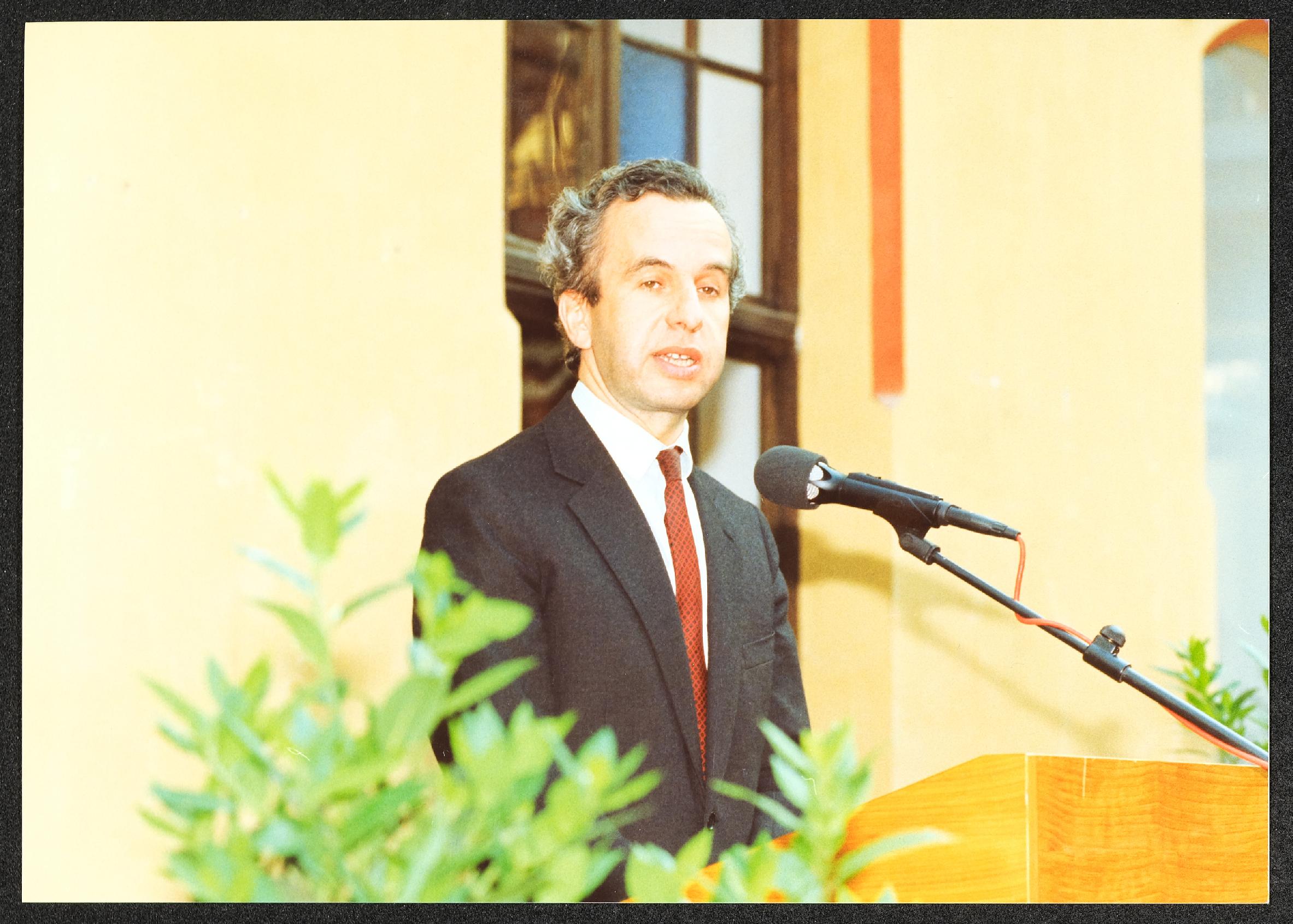 | Beschreibung | Landesausstellung 1987 "Arbeit - Mensch - Maschine" im Museum Industrielle Arbeitswelt Steyr: Eröffnung Info, Rede von Minister Scholten |