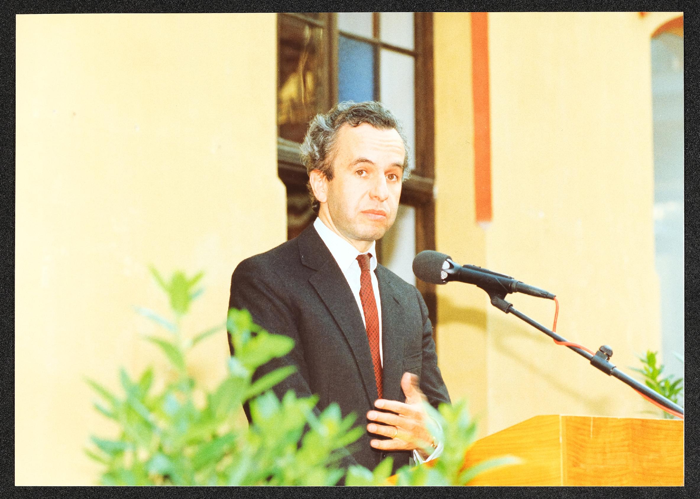| Beschreibung | Landesausstellung 1987 "Arbeit - Mensch - Maschine" im Museum Industrielle Arbeitswelt Steyr: Eröffnung Info, Rede von Minister Scholten |