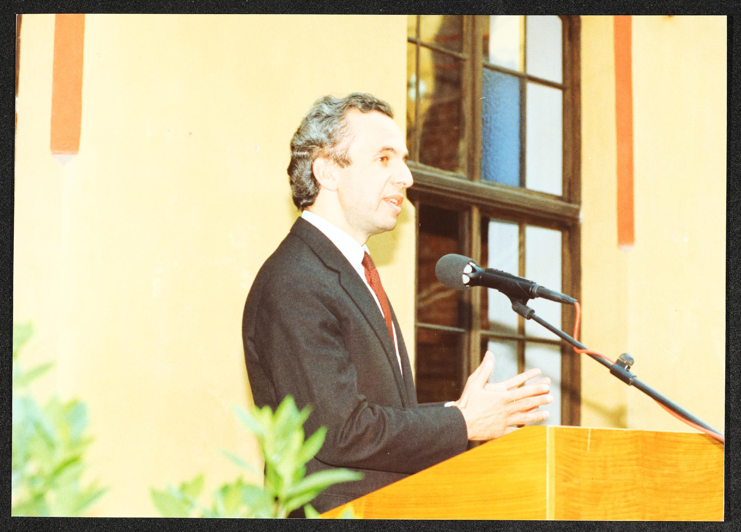 | Beschreibung | Landesausstellung 1987 "Arbeit - Mensch - Maschine" im Museum Industrielle Arbeitswelt Steyr: Eröffnung Info, Rede von Minister Scholten |