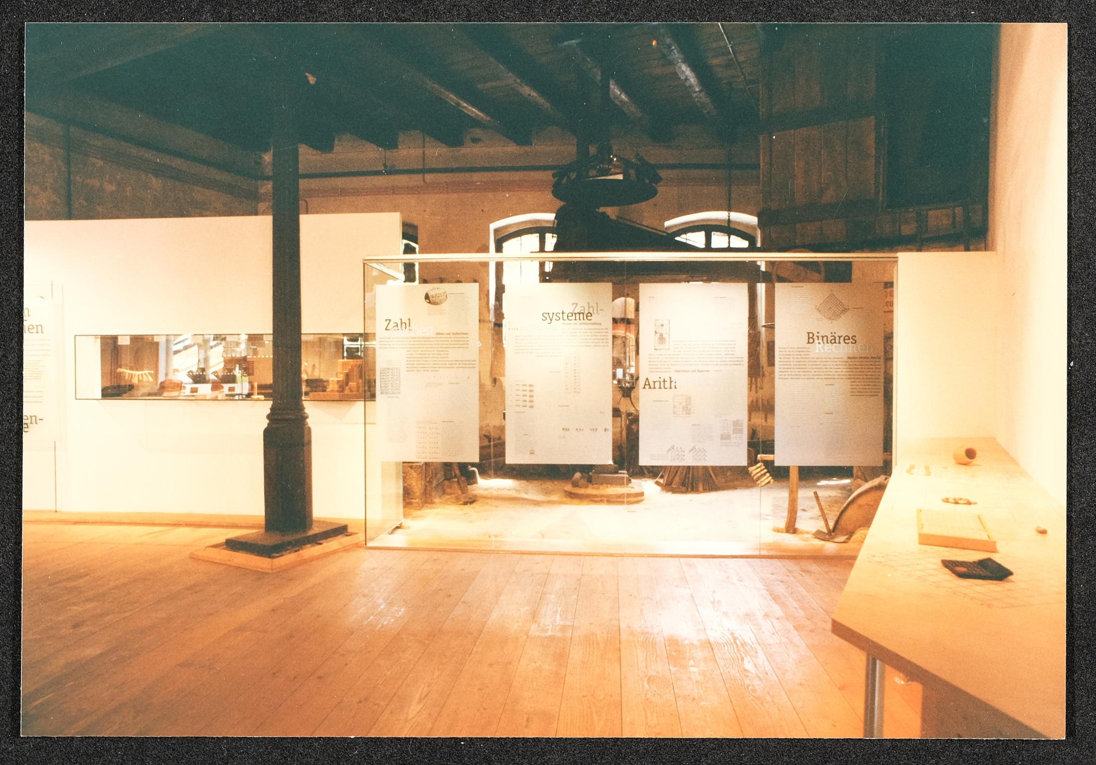 | Beschreibung | Ausstellung 1993 "Info, eine Geschichte des Computers" im Museum Industrielle Arbeitswelt Steyr: Ausstellungsgestaltung: Raum 2, Zählen, Zahlsysteme |