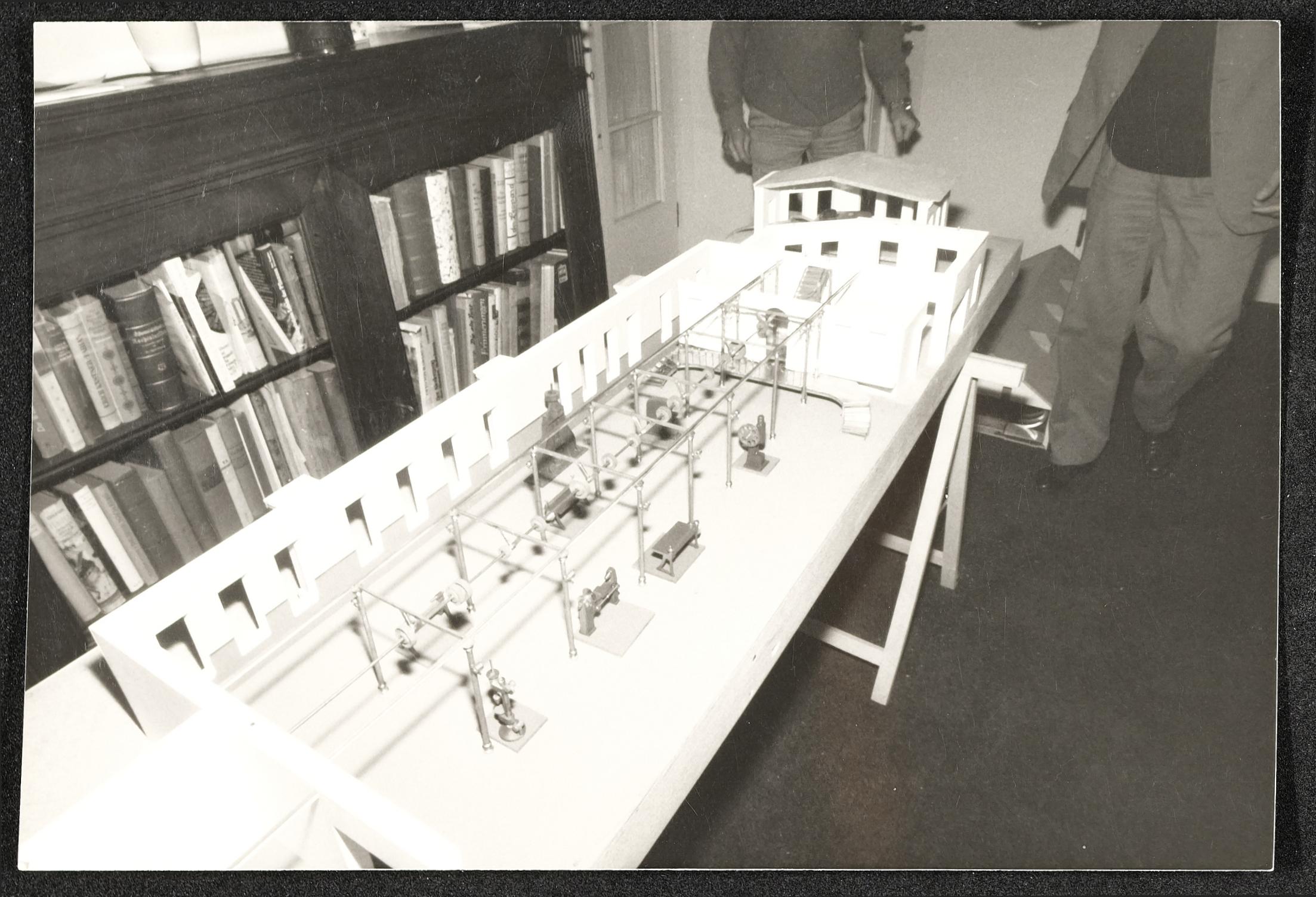 | Beschreibung | 1986: Präsentation des Ausstellungsmodells Transmissionshalle von Hans Hoffer für die Landesausstellung 1987 "Arbeit - Mensch - Maschine" im Museum Industrielle Arbeitswelt Steyr |