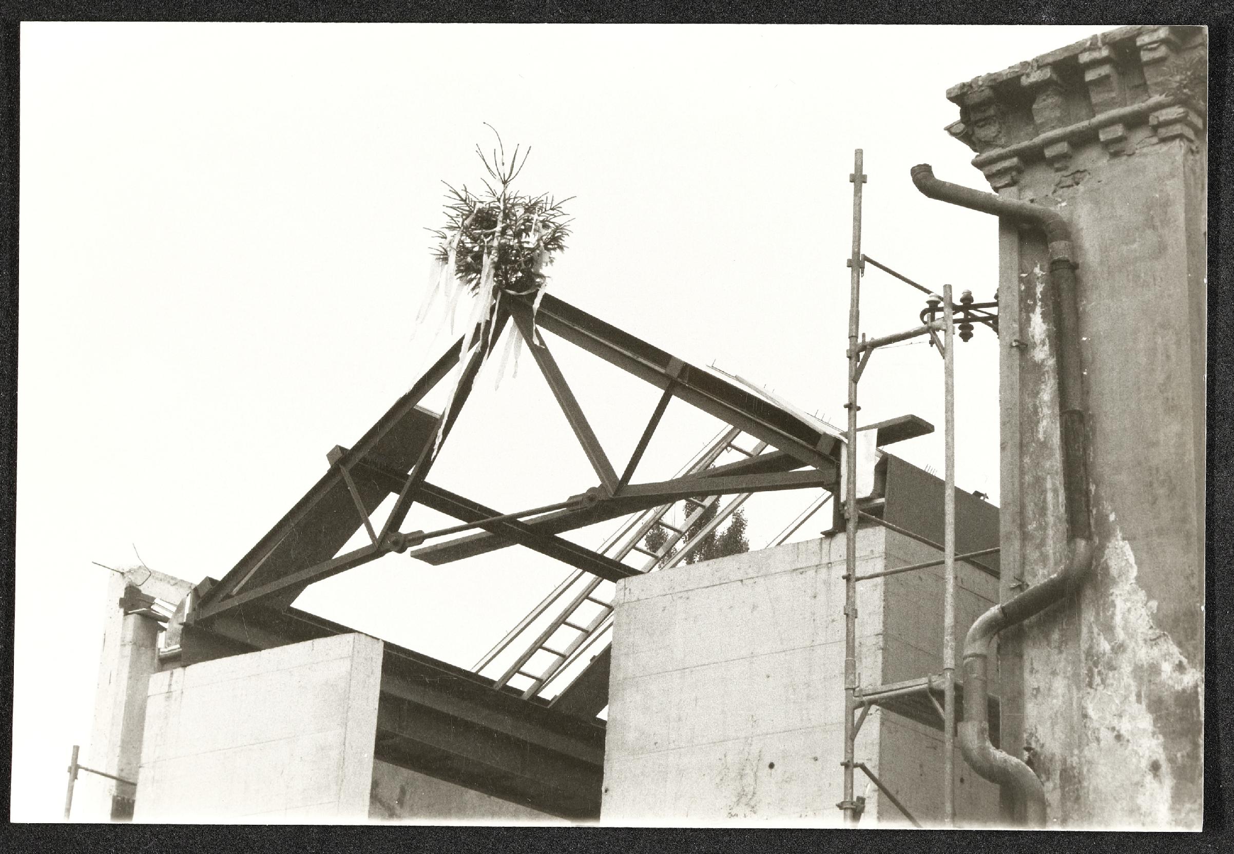| Beschreibung | Dach der Mittelhalle, Gleichenfeier |