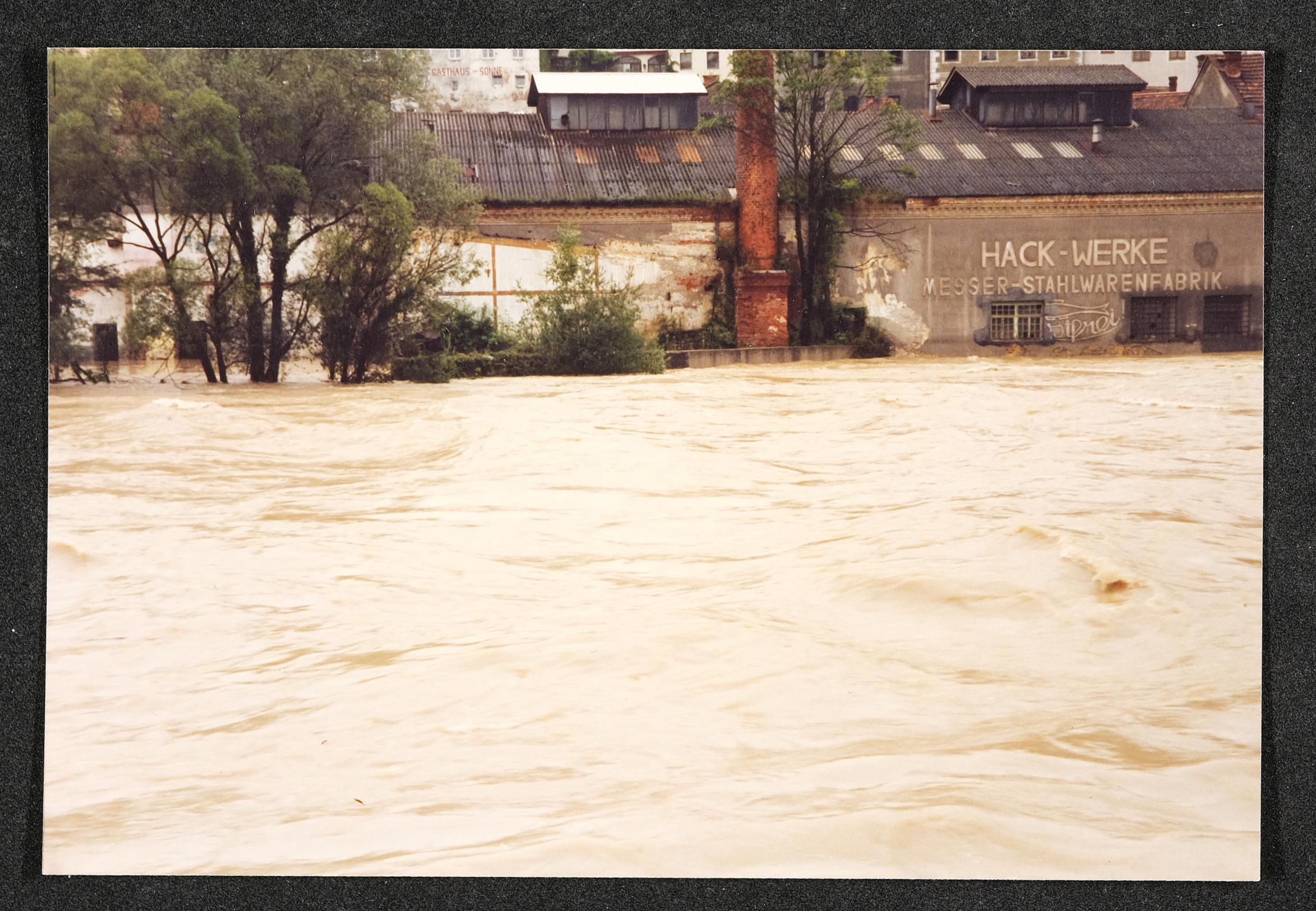 | Beschreibung | Hochwasser im Wehrgraben bei den ehemaligen Hack-Werken am 1. August 1991 |