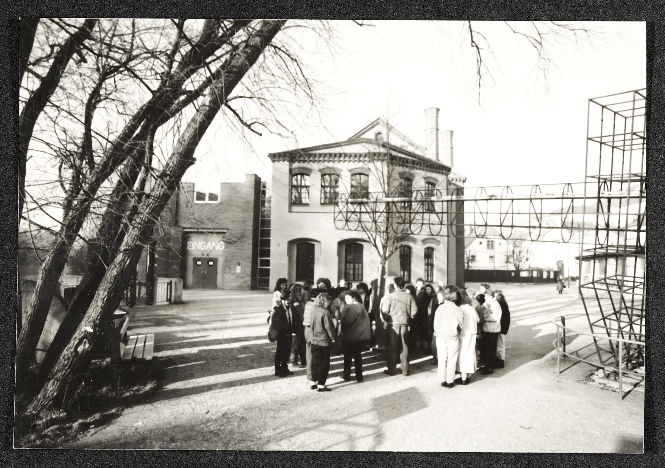 | Beschreibung | Fassade des Museums zum Zeitpunkt der Ausstellung "Metallerleben, Über die Geschichte der MetallarbeiterInnen" mit Besuchergruppe |