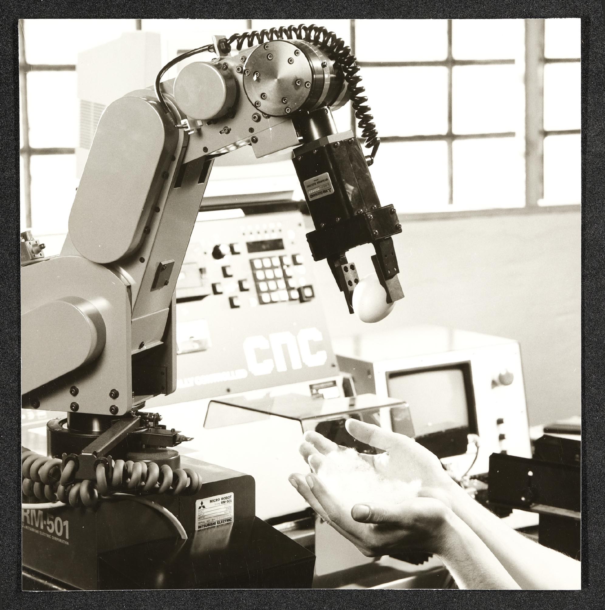 | Beschreibung | Objekt Roboterarm während der Ausstellung "Die Roboter kommen, Über die Zukunft der Industriegesellschaft" im Museum Arbeitswelt Steyr |