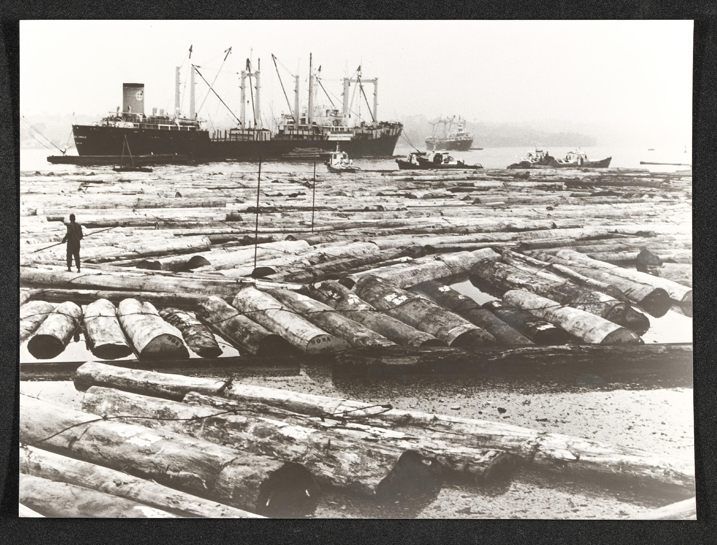 | Beschreibung | Forstwirtschaft, Schlägerung des Regenwaldes, Abtransport der Stämme mit Schiff in den 1980er-Jahren |