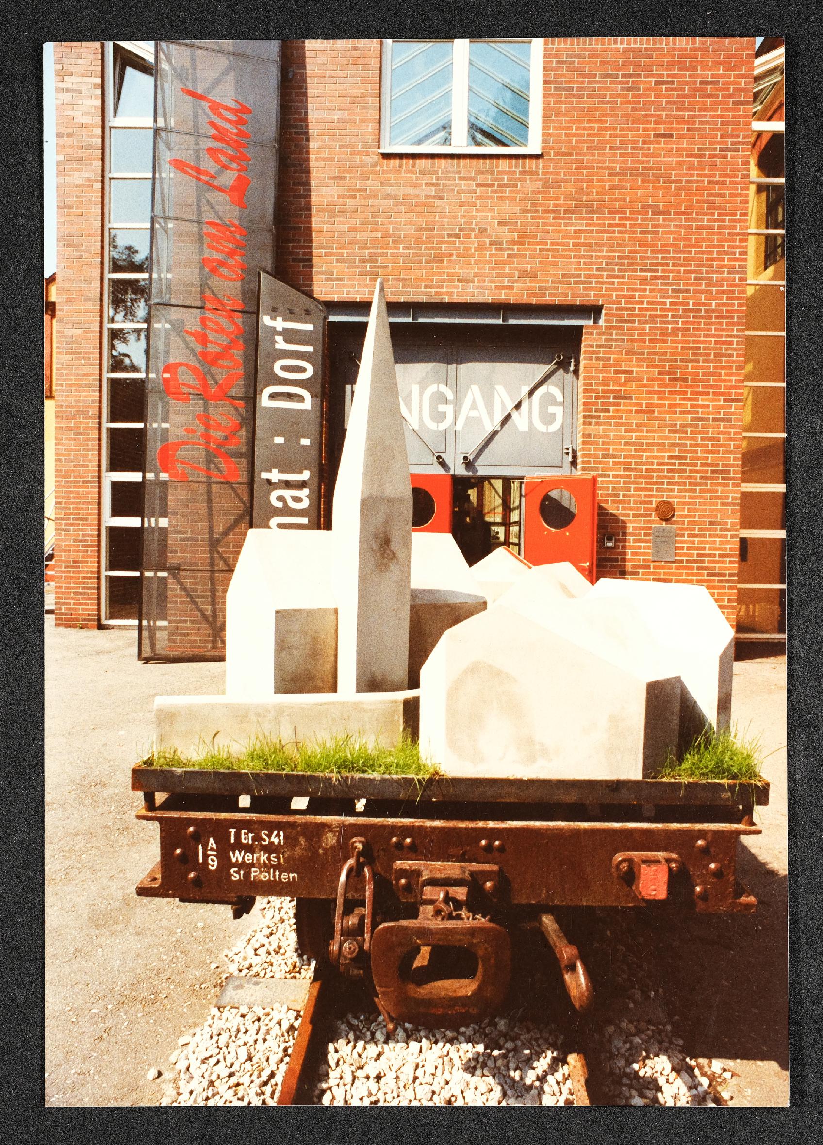 | Beschreibung | "Die Roten am Land, 100 Jahre österreichische Sozialdemokratie in der Provinz", Museumsvorplatz: Installation Dorf |