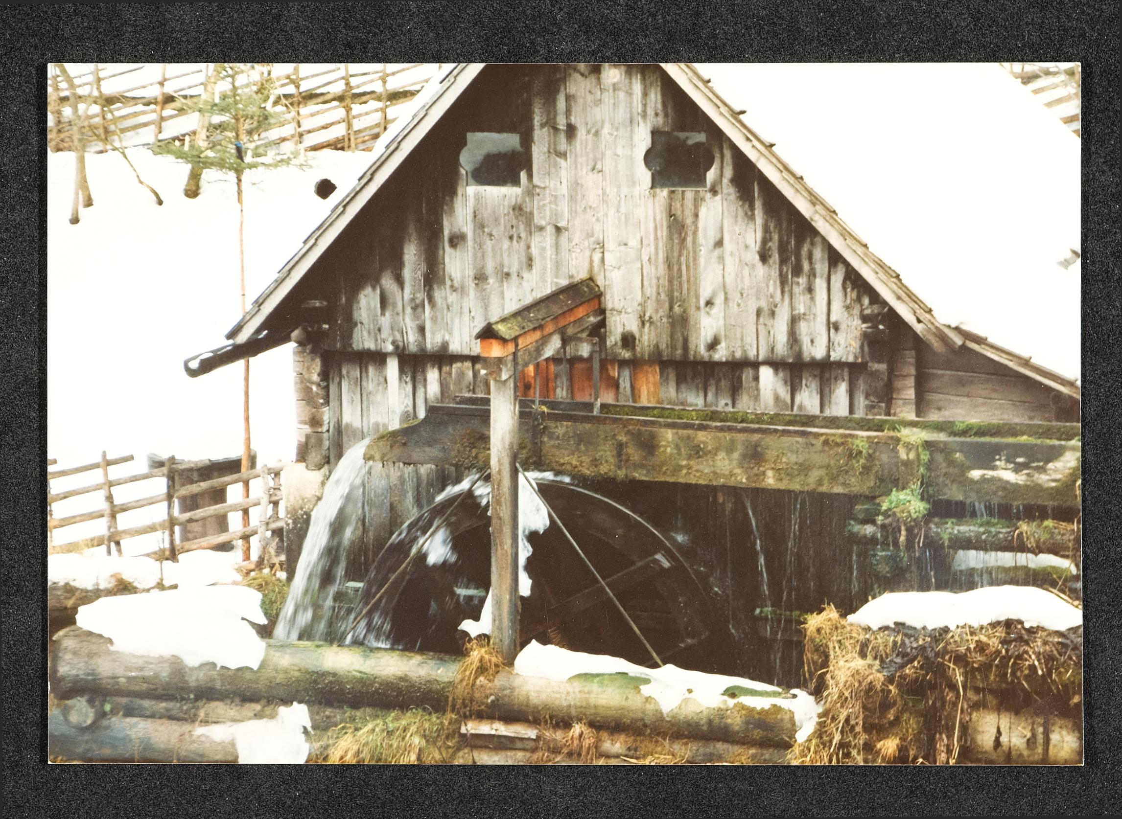 | Beschreibung | Katzensteinermühle (gebaut 1820) am Gaflenzbach in Weyer , Museumsmühle mit Wasserrad und Troadkasten, im Winter 1995 |