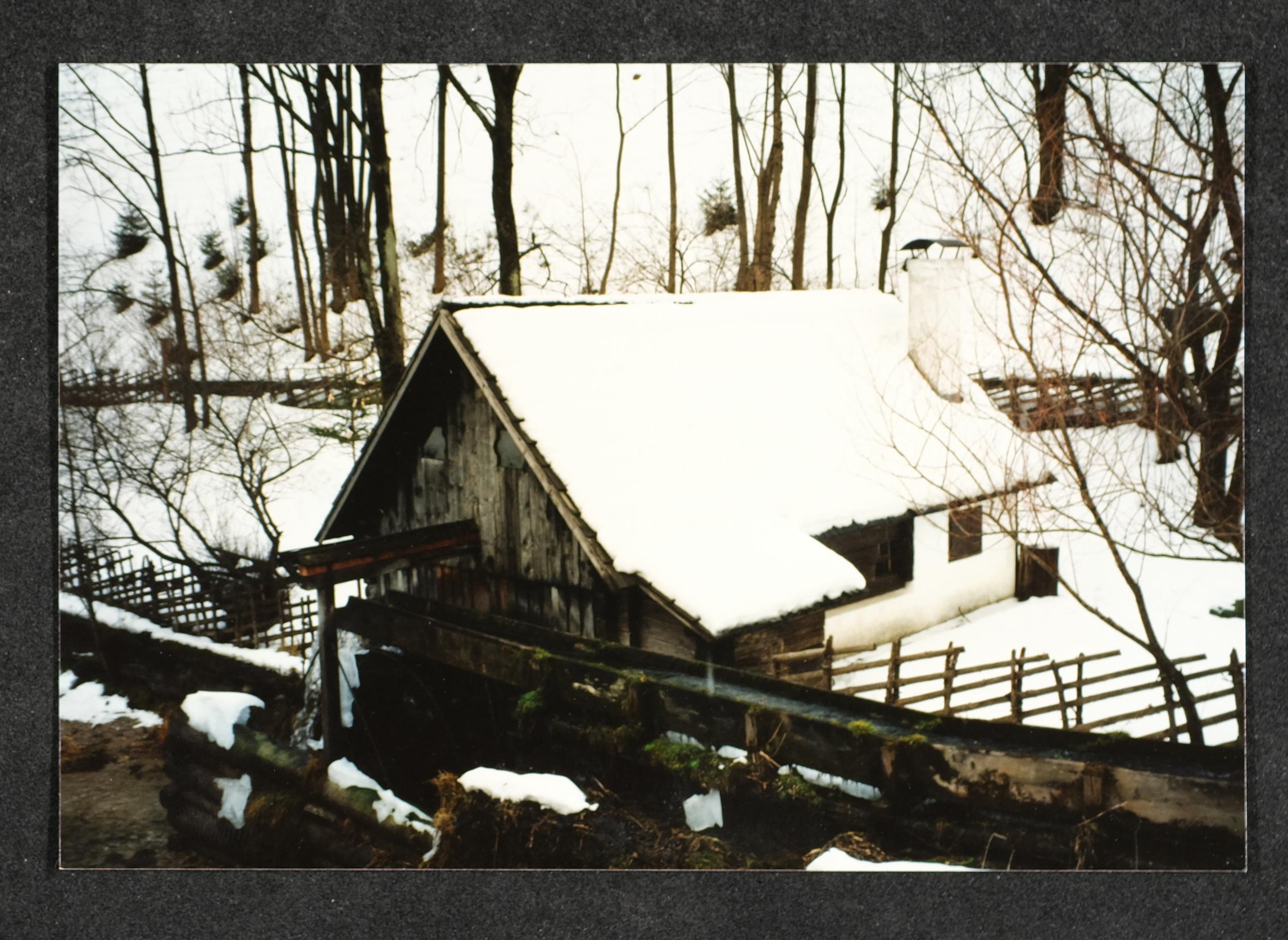 | Beschreibung | Katzensteinermühle (gebaut 1820) am Gaflenzbach in Weyer , Museumsmühle mit Wasserrad und Troadkasten, im Winter 1995 |