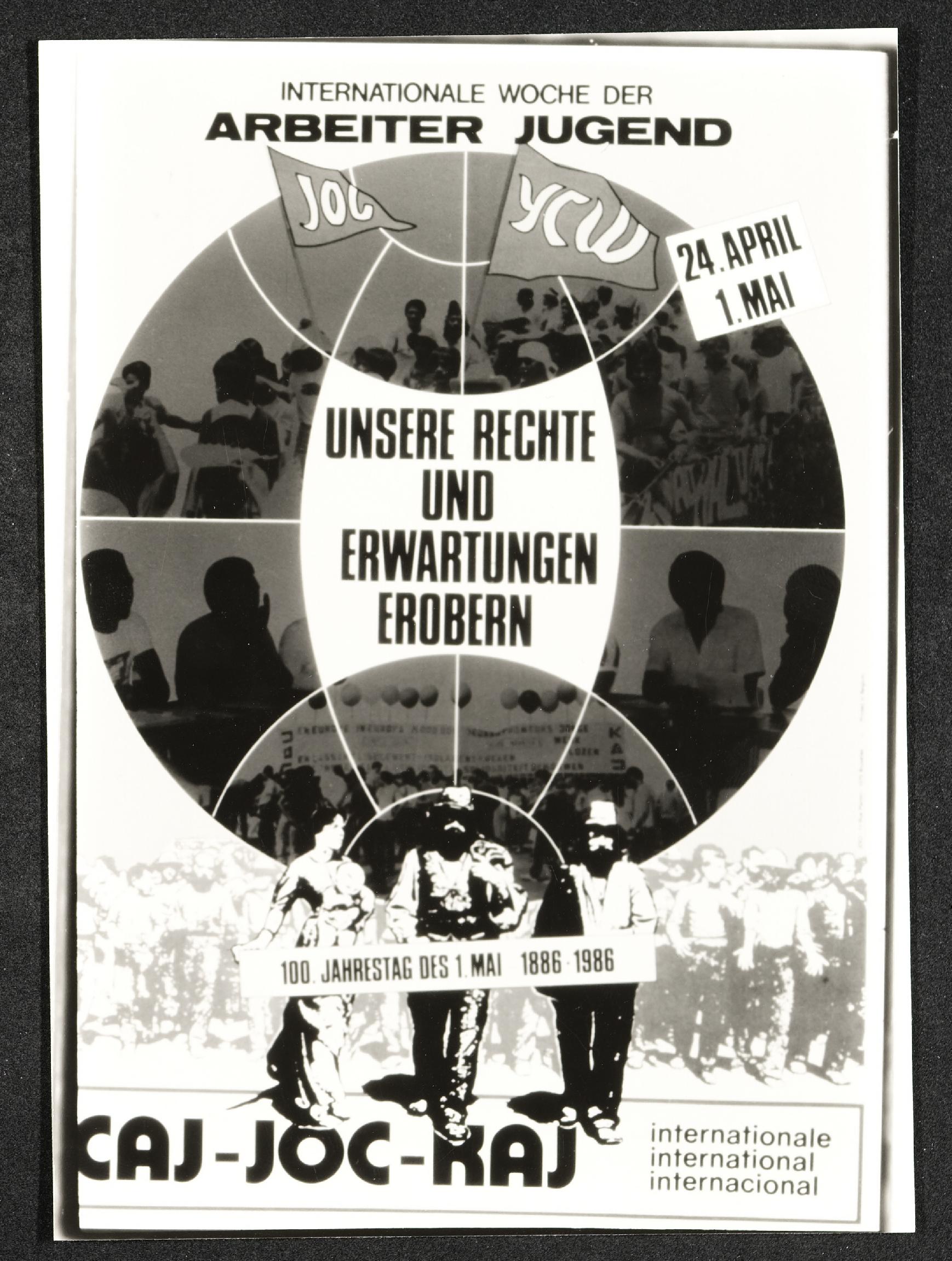 | Beschreibung | Plakat für die Internationale Woche der Katholischen Arbeiterjugend (KAJ) anlässlich des 100. Jahrestages der Feiern am 1. Mai |