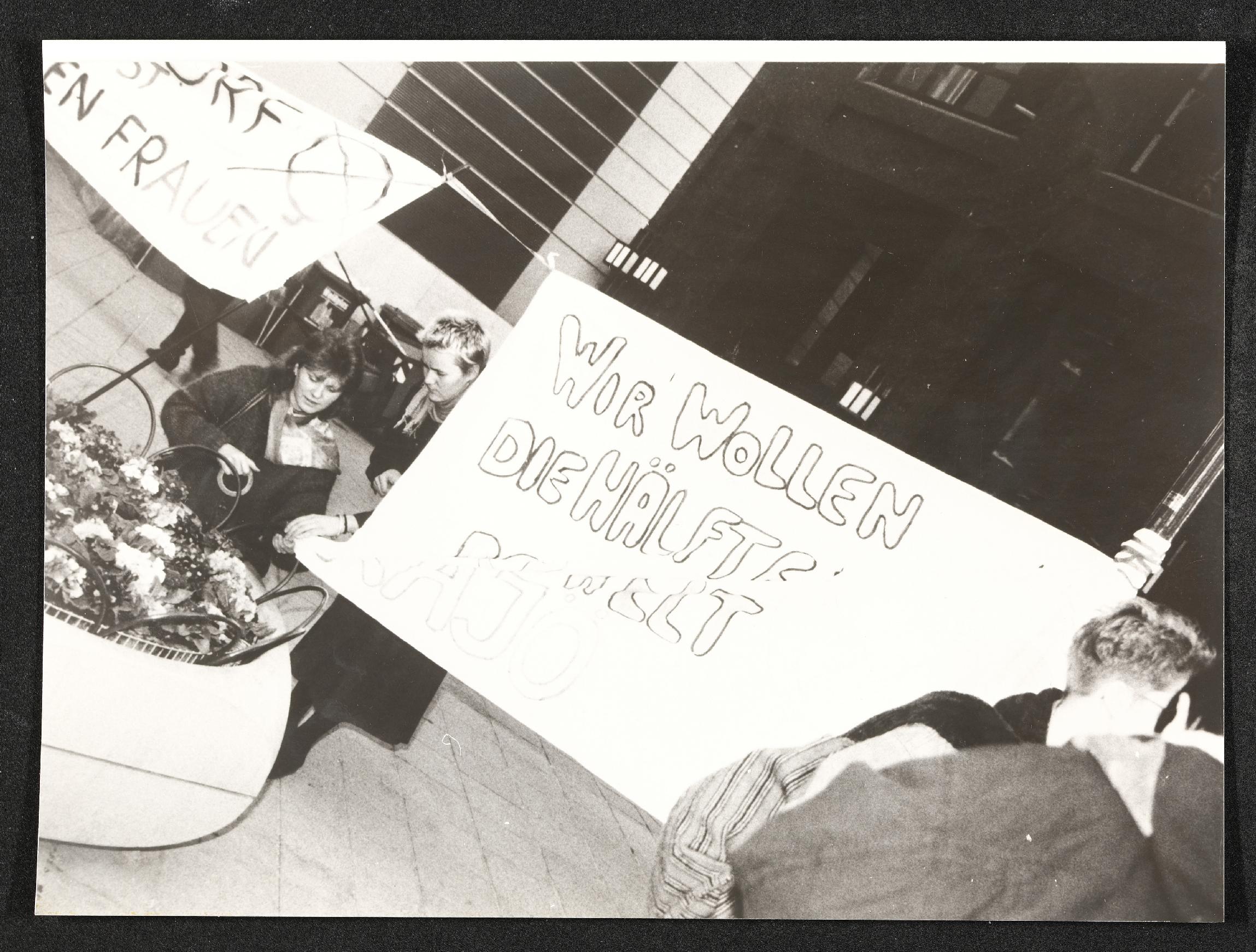| Beschreibung | Lohnhürdenlauf der Katholischen Arbeiterjugend (KAJ) am Internationalen Frauentag, 8. März 1990, Stephansplatz |