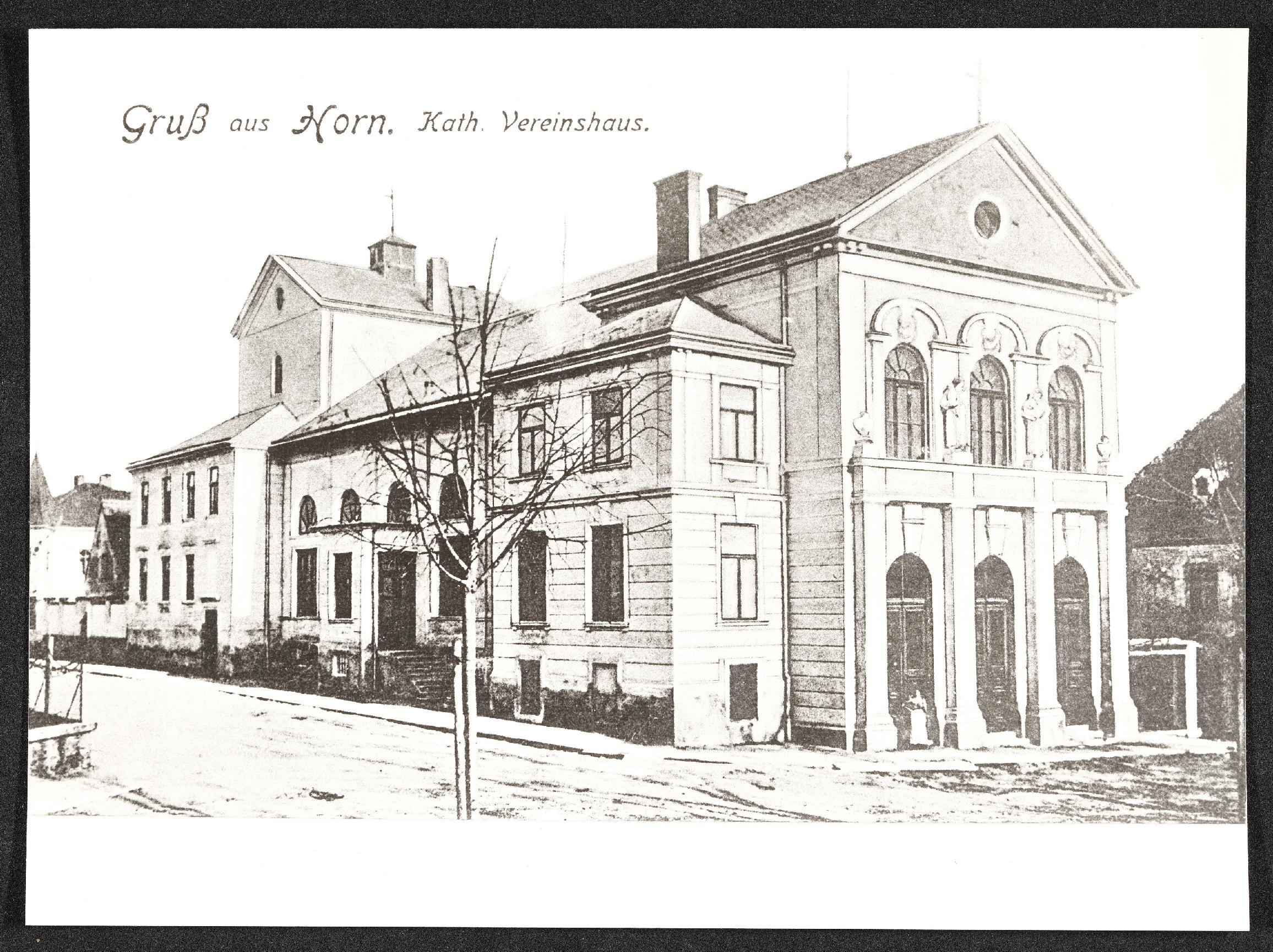 | Beschreibung | Foto (um 1910) der Ansichtskarte "Gruß aus Horn. Kath. Vereinshaus." |