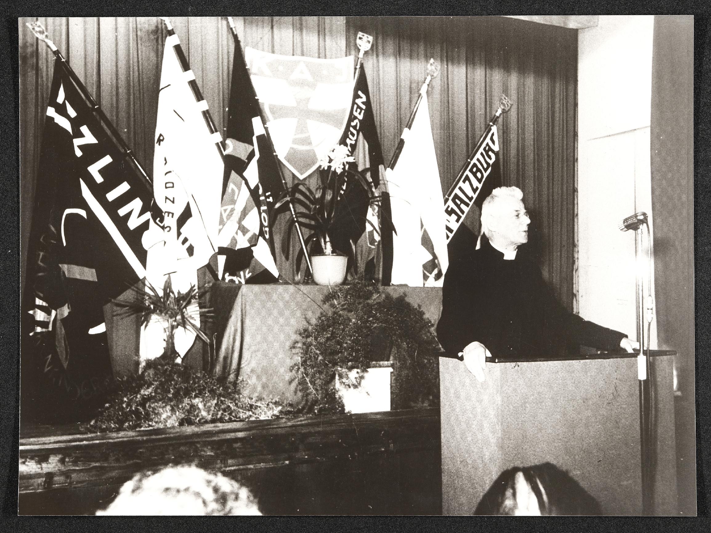 | Beschreibung | 1. Mai 1954: Wallfahrt der Katholischen Arbeiterjugend (KAJ), Kanonikus Cardijn am Rednerpult |