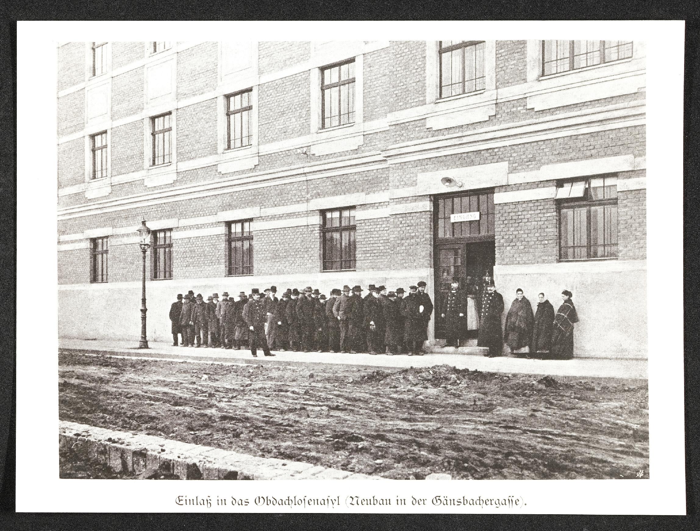 | Beschreibung | Asyl- und Werkhaus der Stadt Wien, 10. Bezirk, Gänsbachergasse, Einlass in das Obdachlosenasyl |