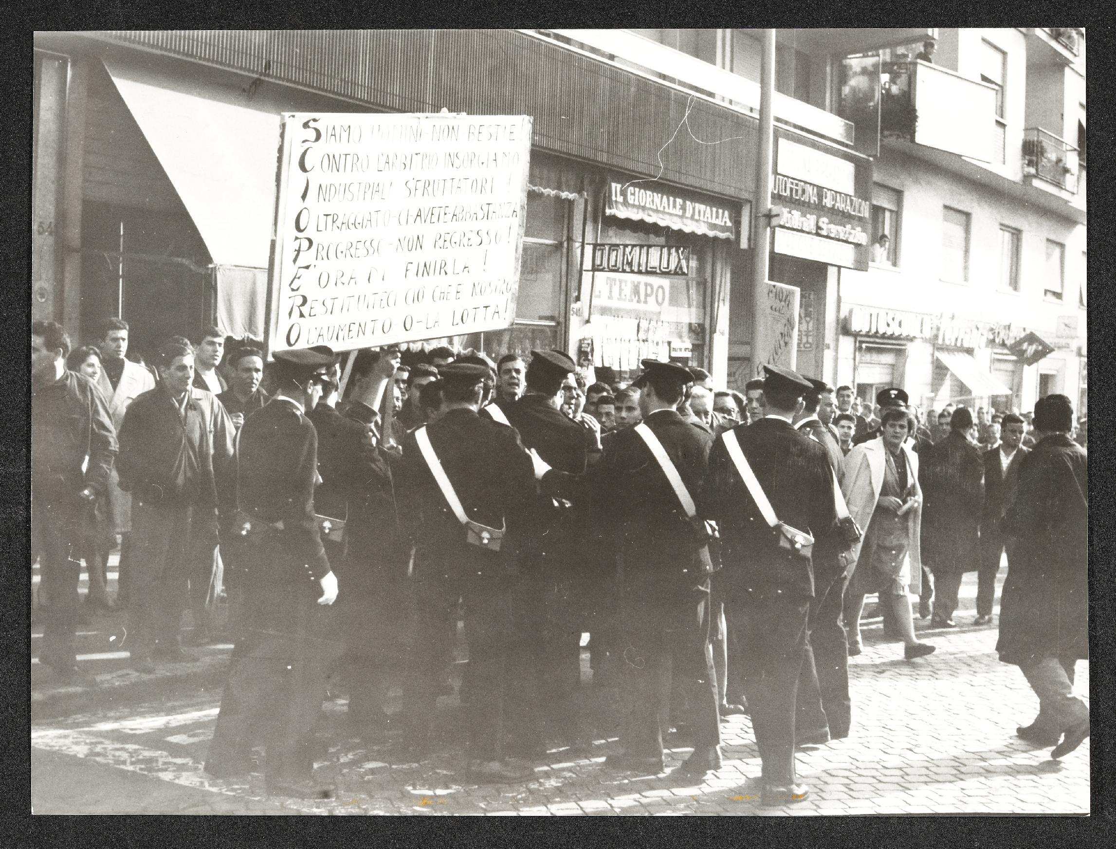 | Beschreibung | Streik der Elektroindustrie, Protestzug der Arbeiter der Fatme-Werke Ende 1960 |
